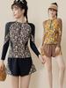 Compra Traje de baño deportivo conservador de manga larga con protector solar, cuello alto y cremallera, estilo falda floral de talla grande para mujer al por mayor en Joom.pro