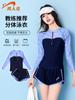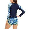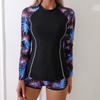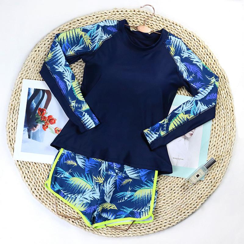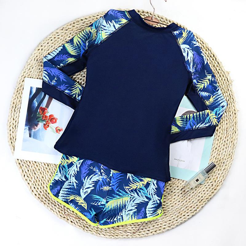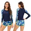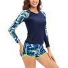 Bikini europeo y americano dividido bóxer traje de baño de mujer conservador de manga larga estampado traje de baño protector solar traje de surf al por mayor