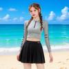 Bikini europeo y americano dividido traje de baño plano femenino conservador manga larga estampado traje de baño protector solar traje de surf venta al por mayor