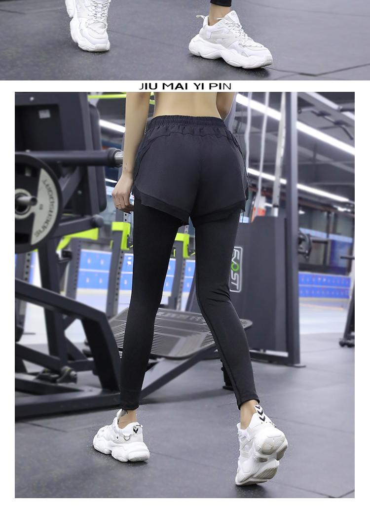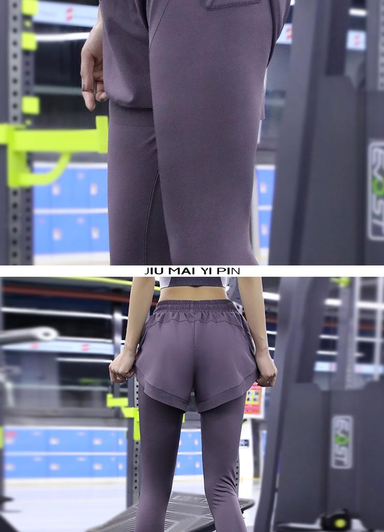 Ropa de Fitness Otoño e Invierno Pantalones Deportivos de Dos Piezas Falsas Ajustados Elásticos Doble Capa Ropa de Yoga Secado Rápido Pantalones de Fitness Holgados