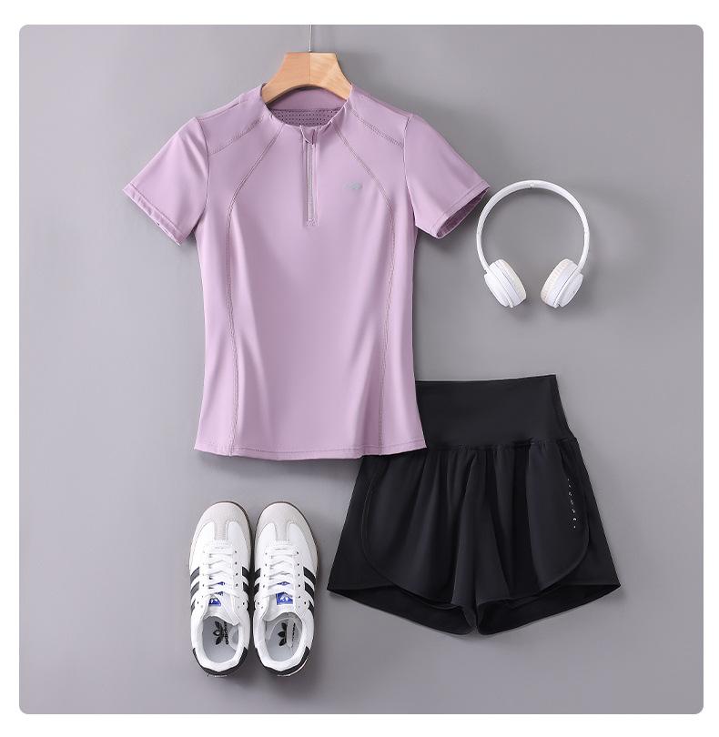 Green two-piece "white shorts/professional quick-drying yoga exercise suit], Purple two-piece black shorts/pro...