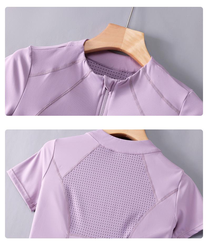 Ropa de yoga, traje deportivo de fitness para mujer, de manga corta, de verano, de secado rápido, para deportes al aire libre, ropa para correr, ropa adelgazante para correr por la mañana, top