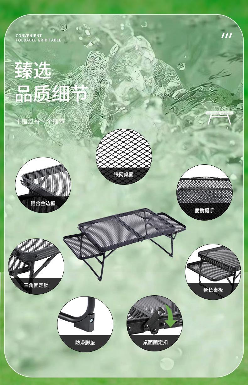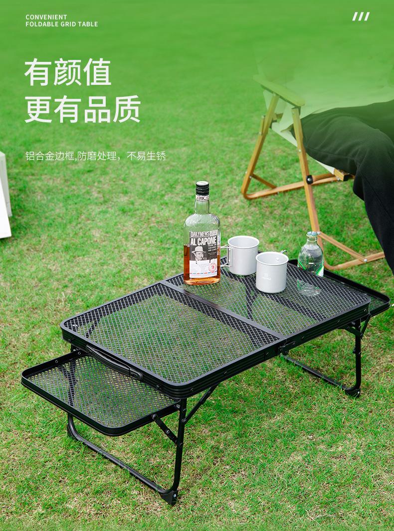Mesa Plegable para Exterior Diseño Portátil Elevable Mesa de Camping Ligera Plegable Resistente al Desgaste Aleación de Aluminio Mesa de Malla Plegable