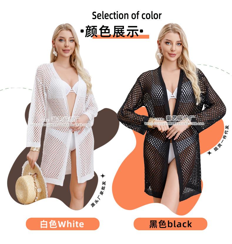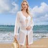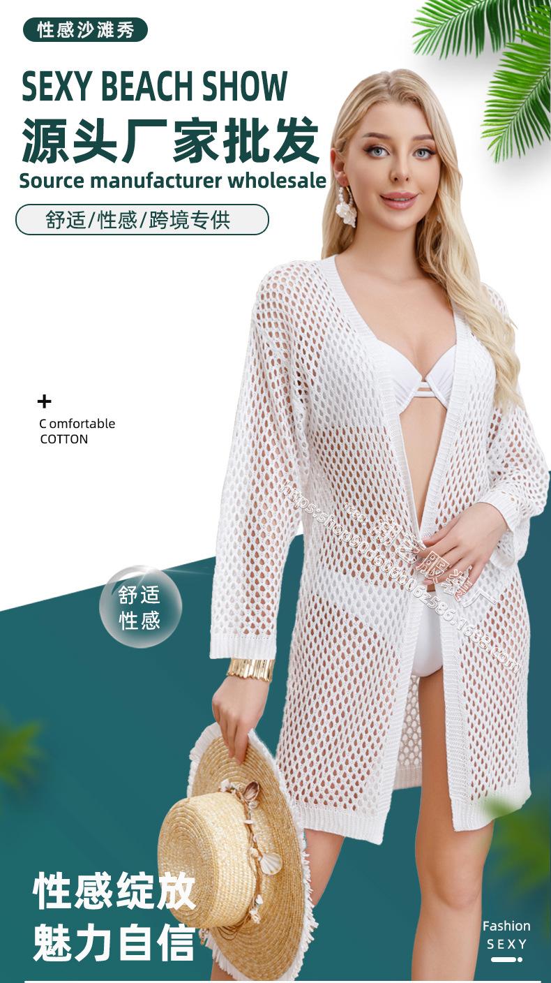 Verano 2025 Nuevo Cárdigan Calado de Playa para Exterior Transfronterizo con Protección Solar Europeo y Americano Sexy Talla Grande Traje de Baño Venta al por Mayor