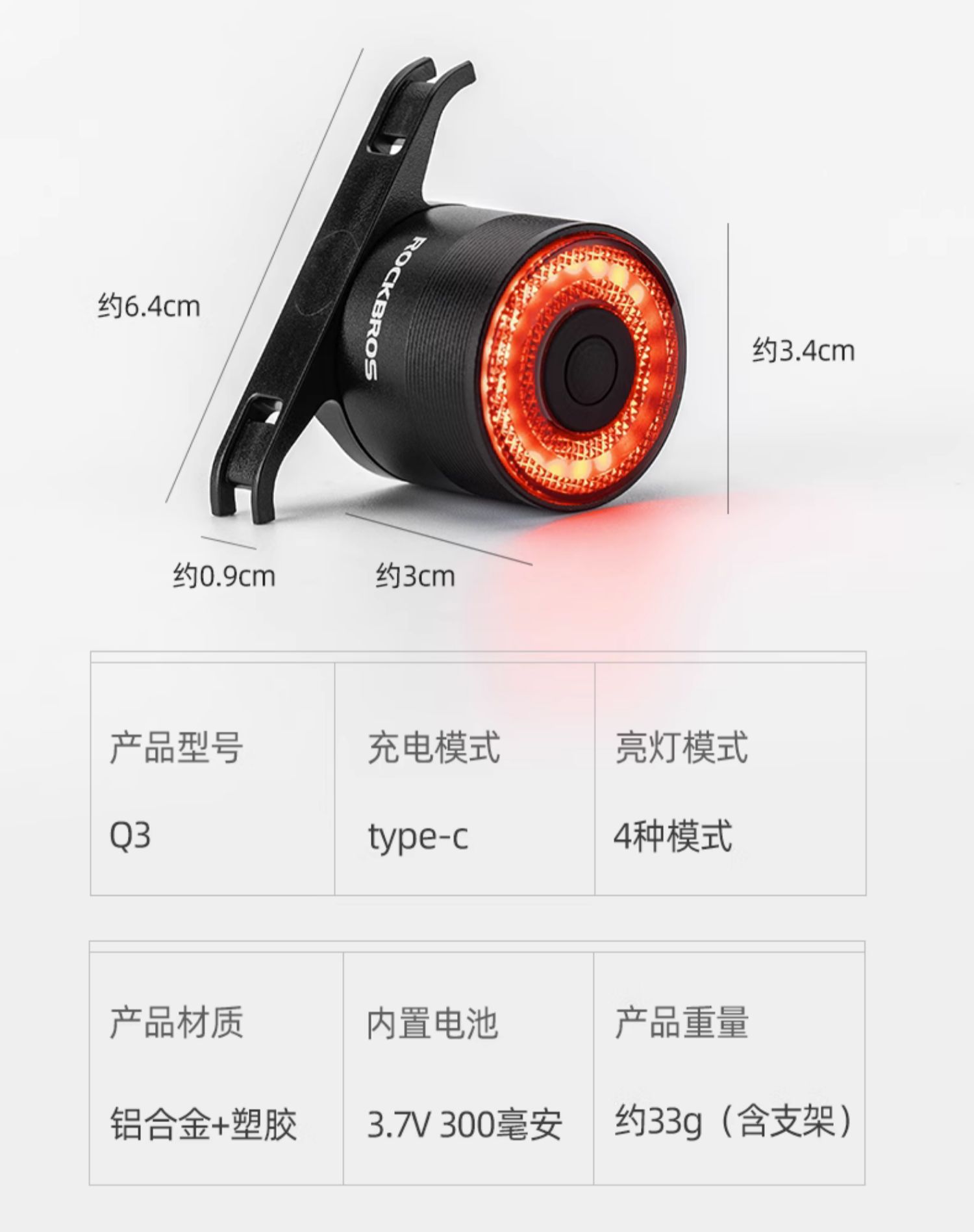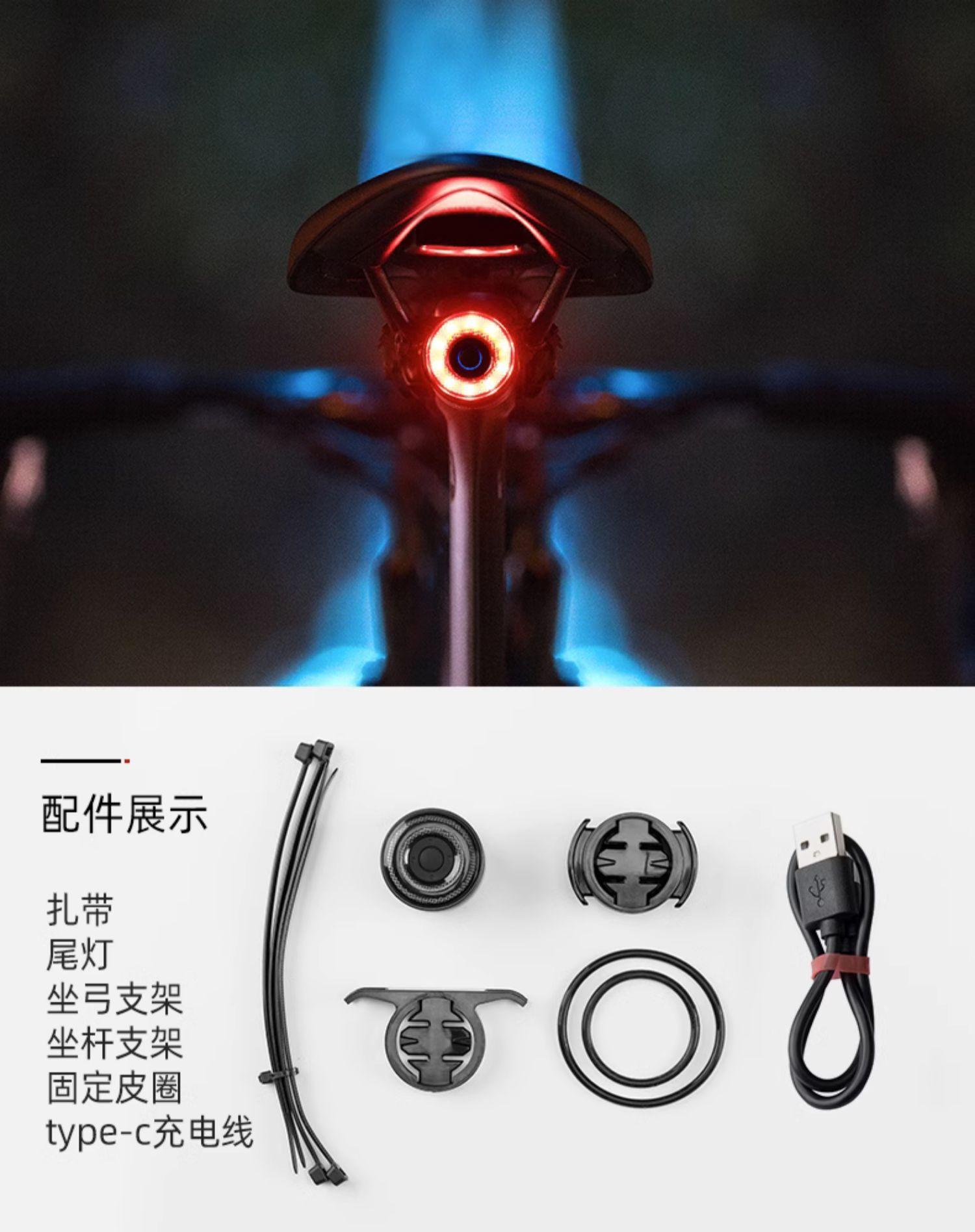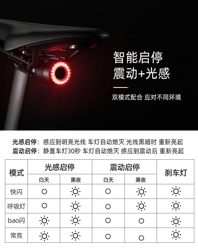 Luz trasera para bicicleta de montaña al por mayor, luz de advertencia para conducción nocturna, luz de freno de inducción inteligente, equipo de conducción.