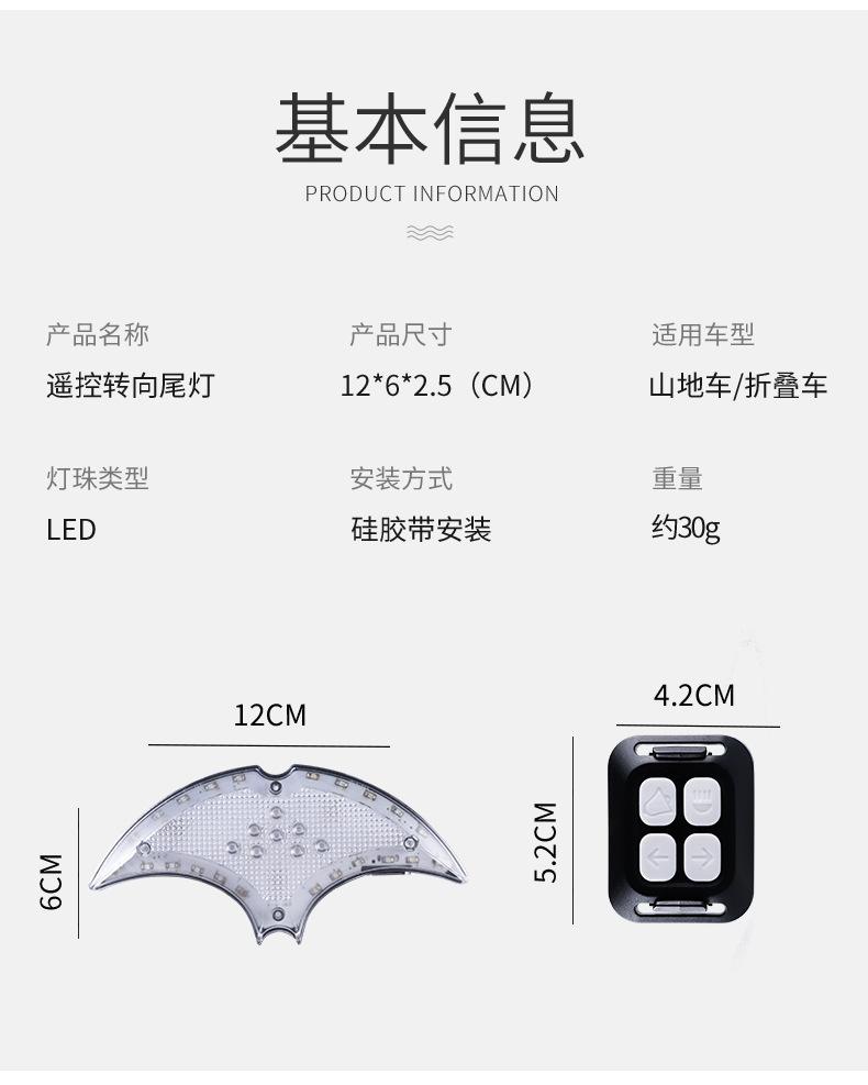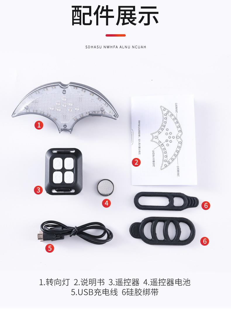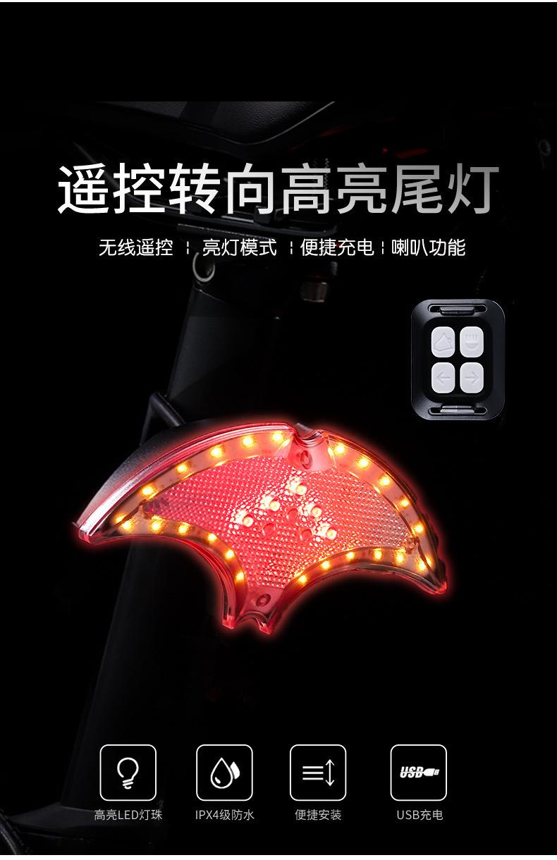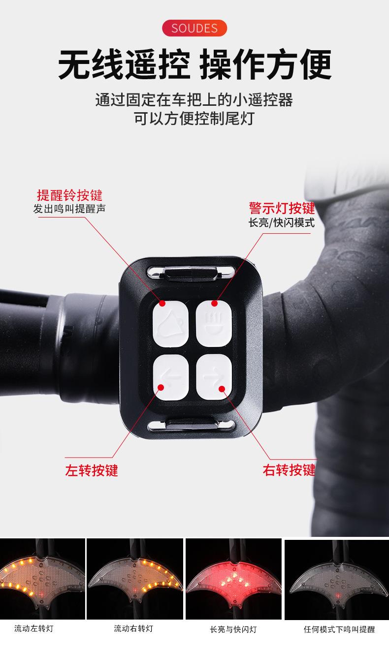 Luz de advertencia para ciclismo de montaña al aire libre nocturno, equipo de ciclismo, control remoto inalámbrico USB, señal de giro, luz trasera brillante para bicicleta