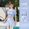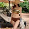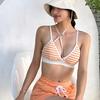 Niñas Europeas y Americanas Rosa Color Sólido Decoraciones Florales Tridimensionales 3D Bikini Dividido Sexy Sling Cintura Alta Playa Mujeres