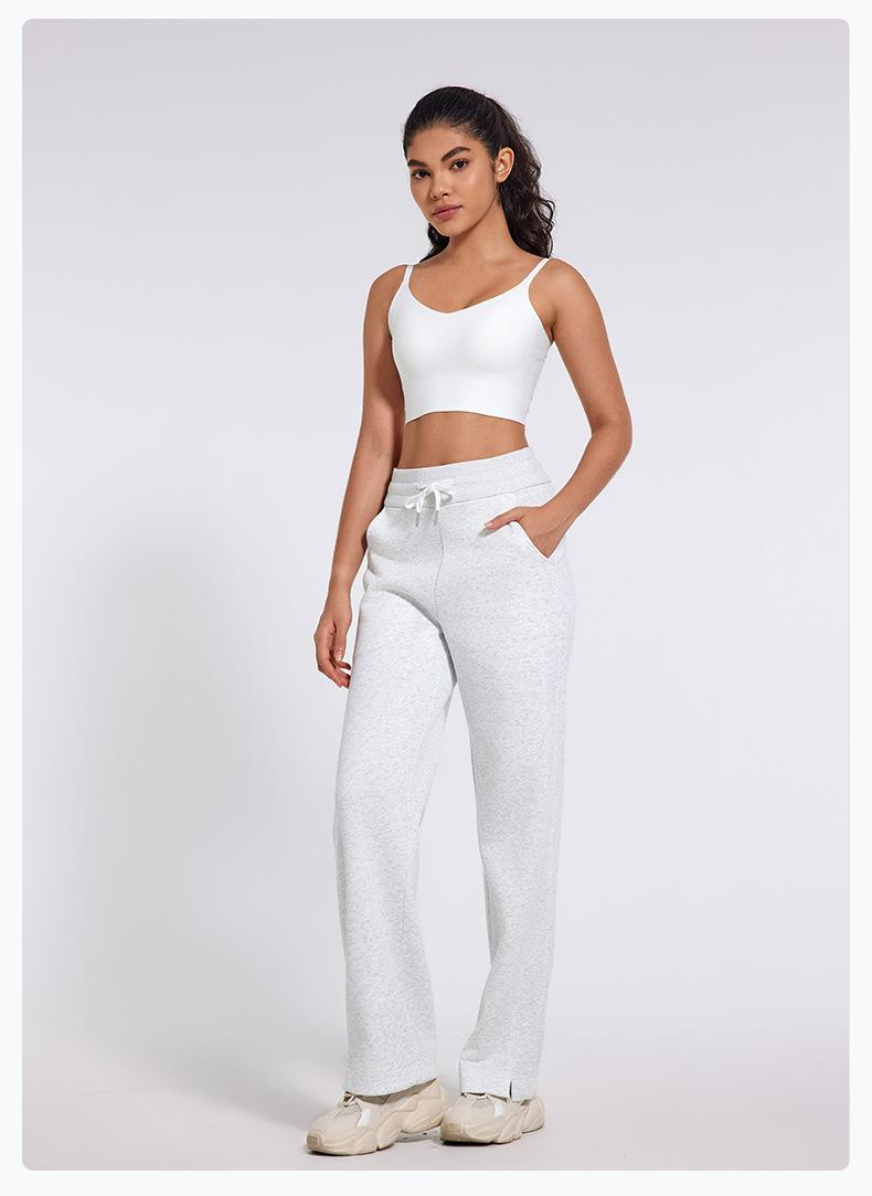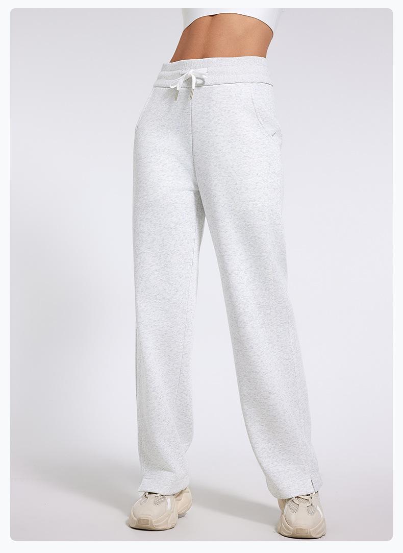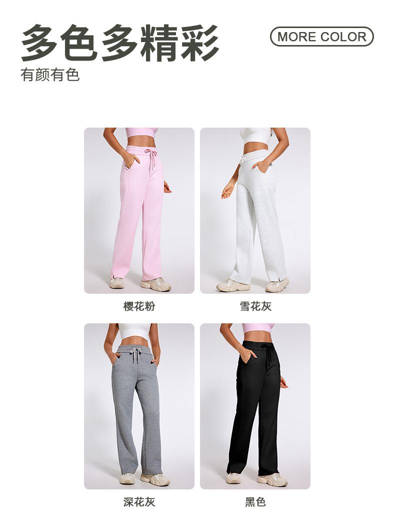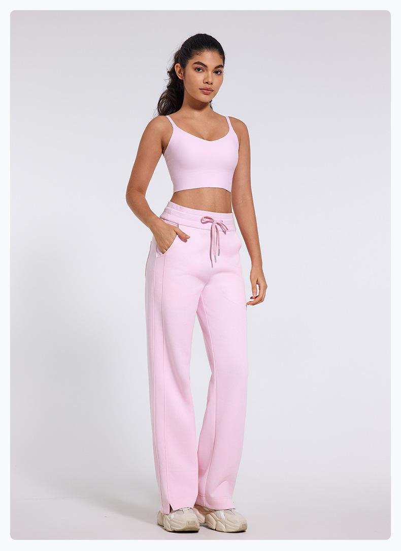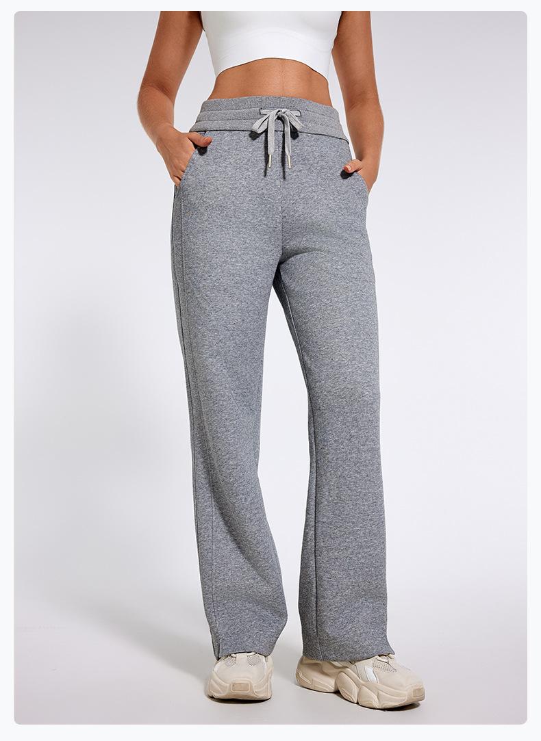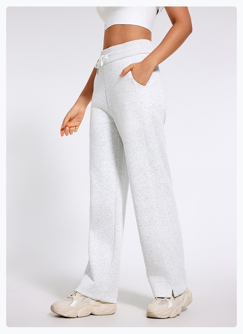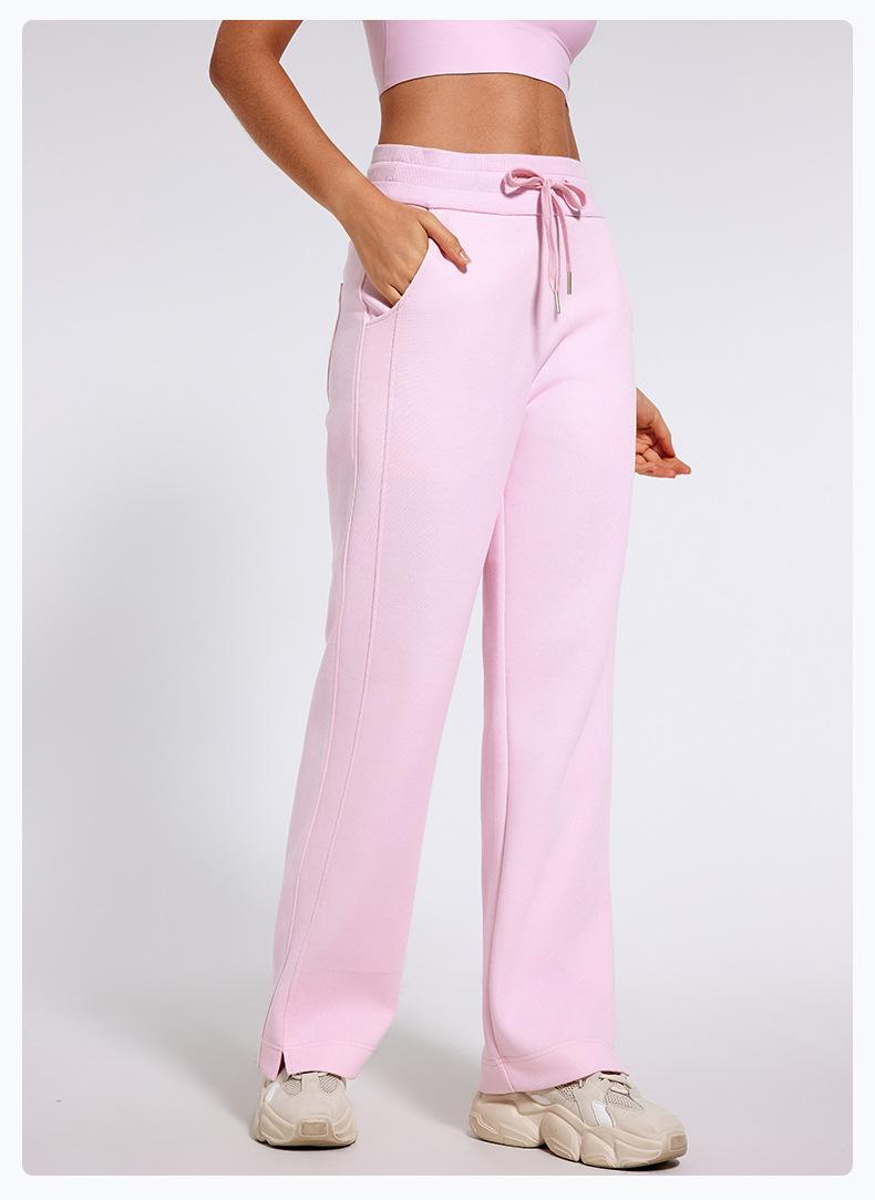 Pantalones deportivos informales de cintura alta con cordón ajustable para otoño e invierno 2024, holgados, de doble línea, con abertura, para adelgazar, fitness, correr, yoga, ropa para mujer