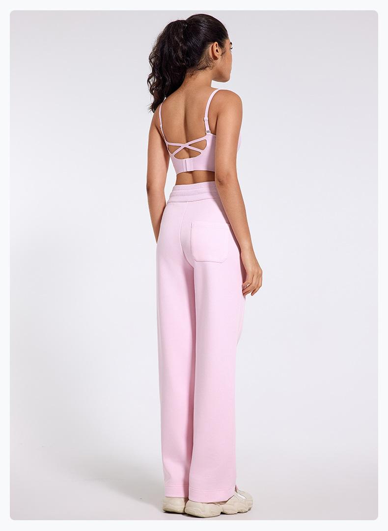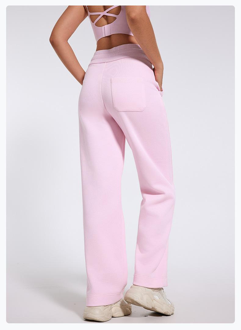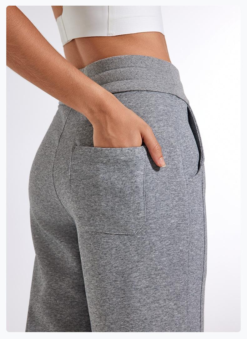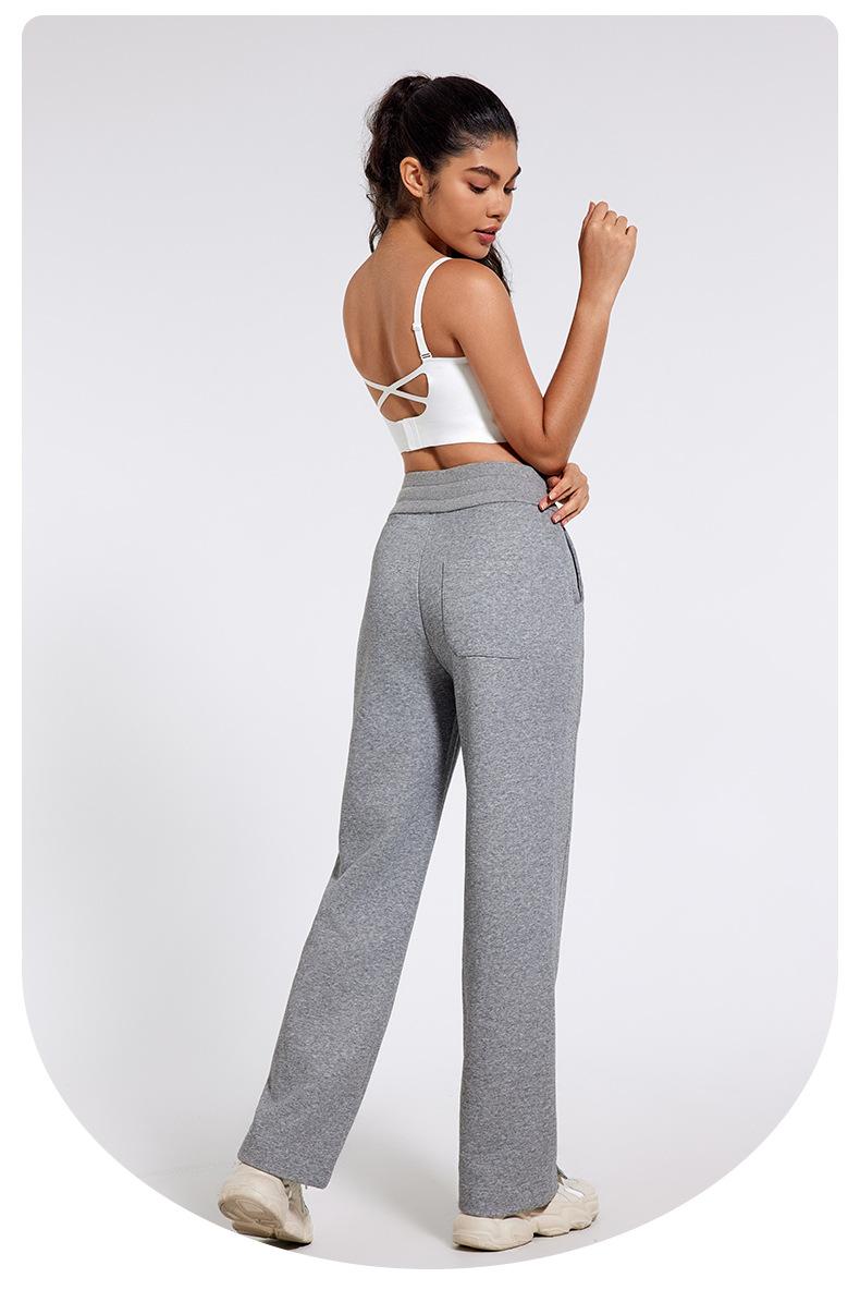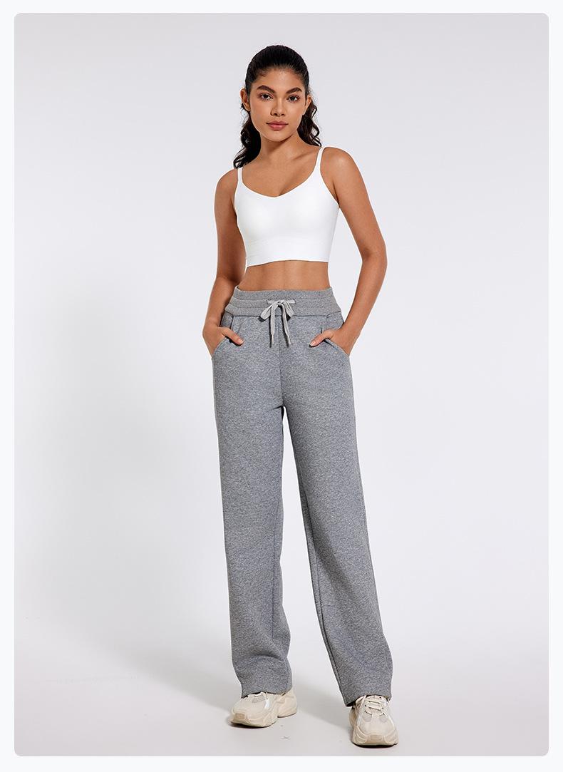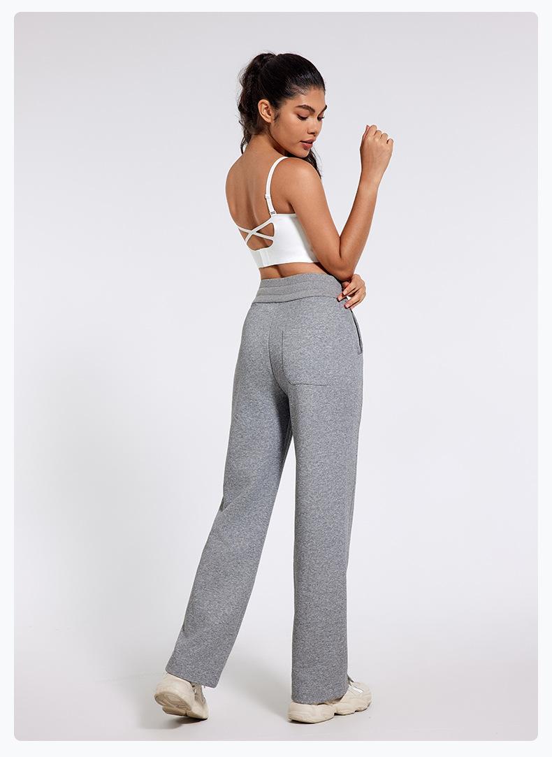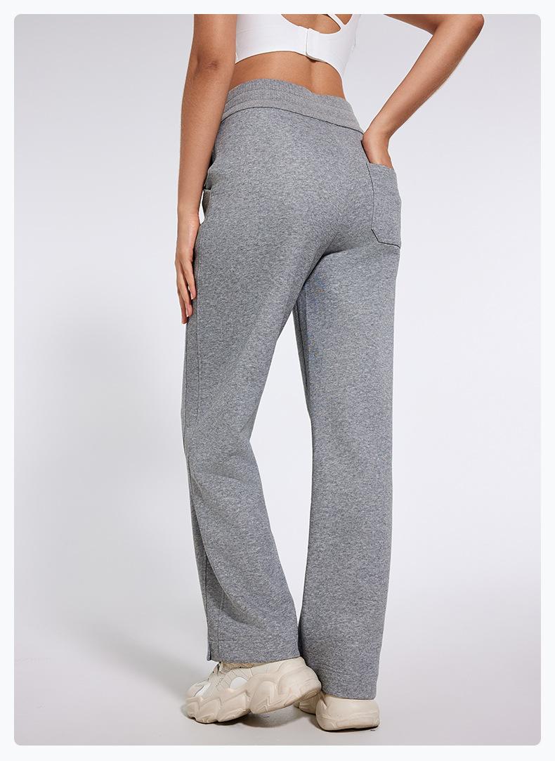 Pantalones deportivos informales de cintura alta con cordón ajustable para otoño e invierno 2024, holgados, de doble línea, con abertura, para adelgazar, fitness, correr, yoga, ropa para mujer