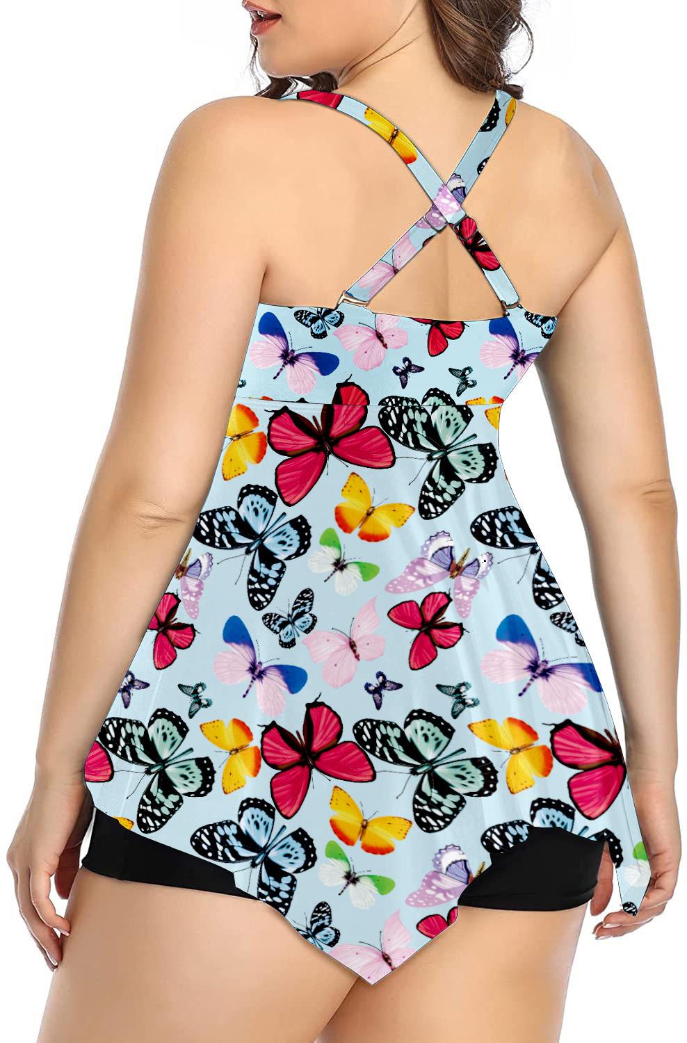 Traje de baño de dos piezas para mujer de Amazon, traje de baño de talla grande con parte superior de bikini con efecto lifting y pantalones cortos, traje de baño para mujer gorda.