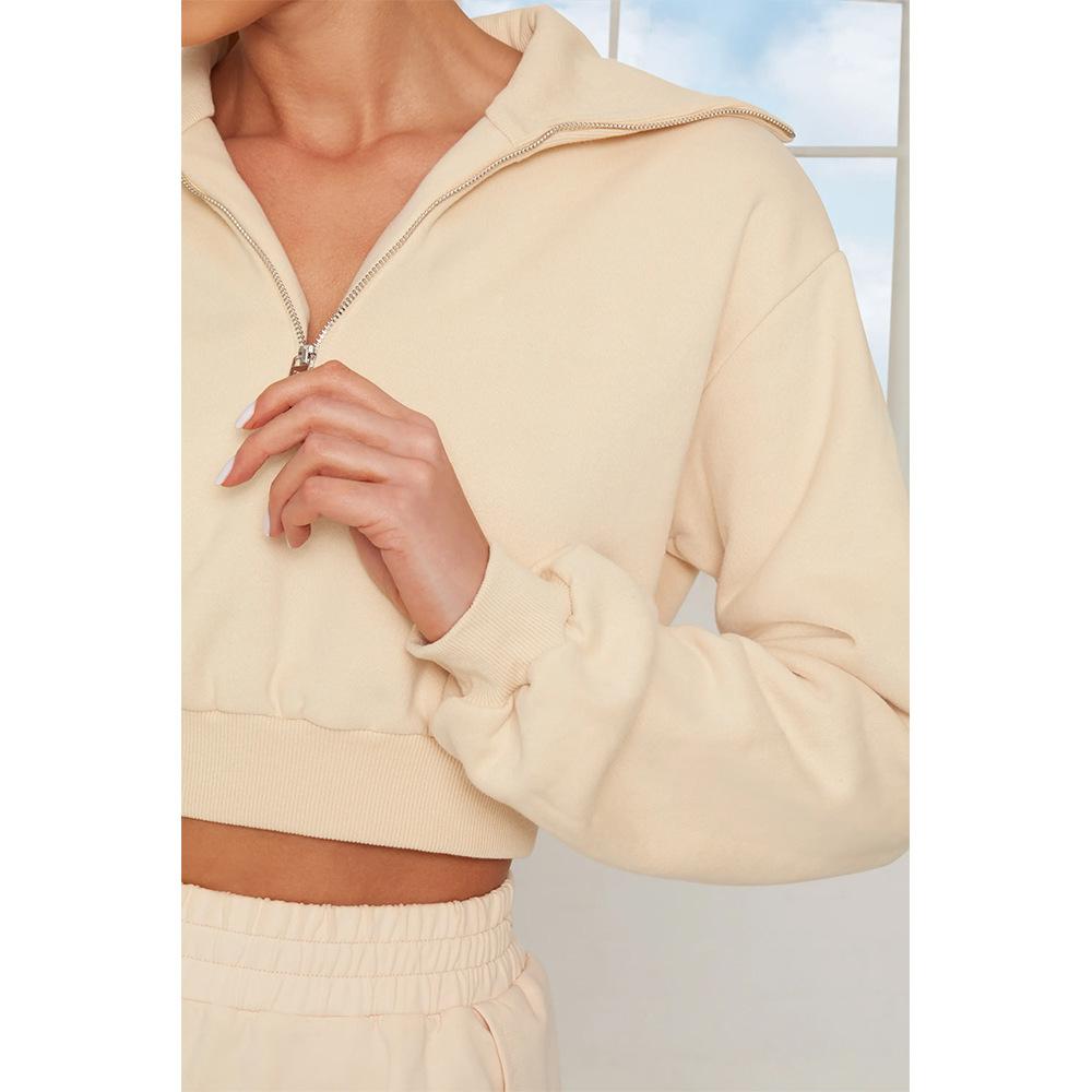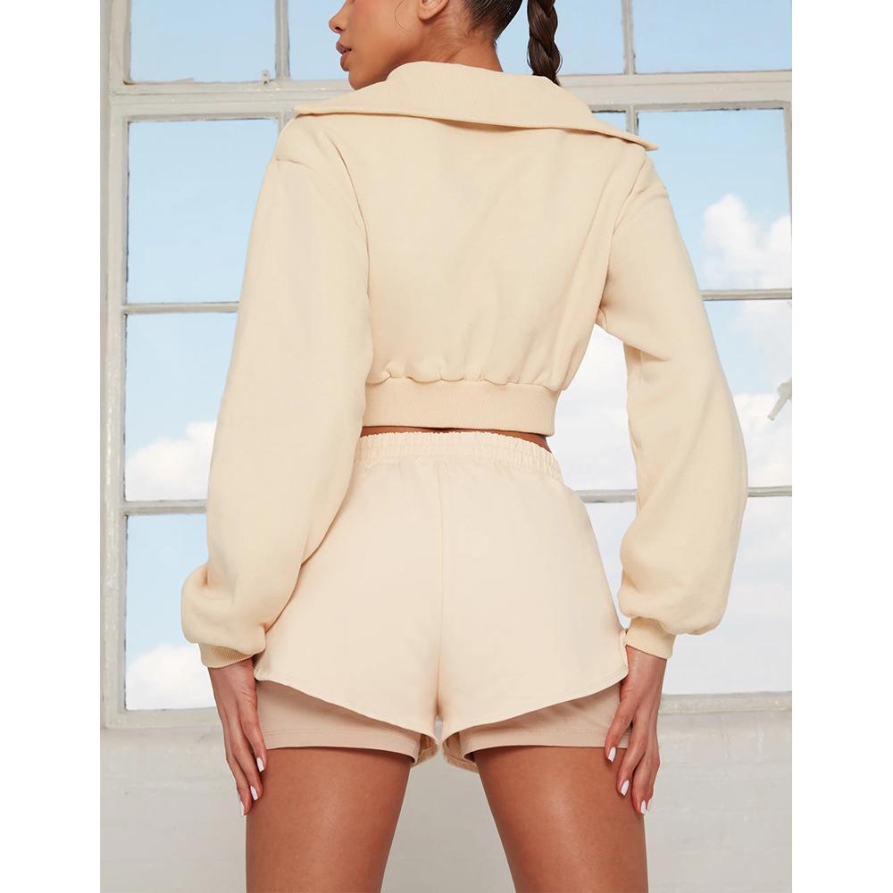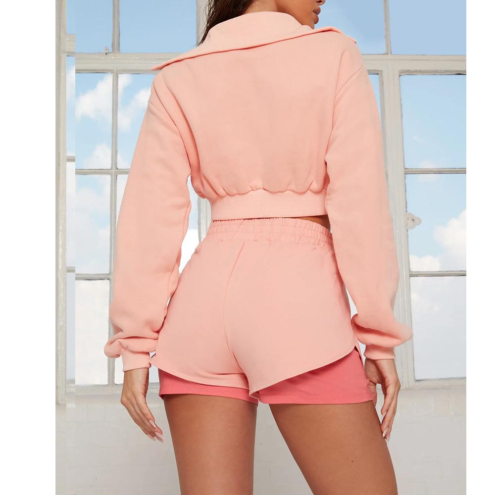 Sudadera de Moda Europea y Americana Transfronteriza 2025 Color Puro Manga Larga Casual Traje Deportivo Falso de Dos Piezas Shorts para Mujer