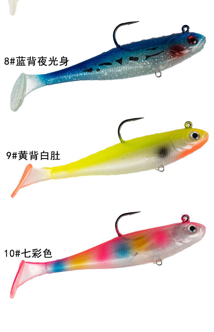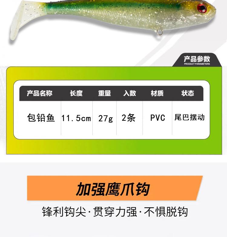 Comercio exterior transfronterizo de material de PVC, cola en T, nuevo paquete, pez plomo, 11,5 cm, 27 g, cebo Luya, cebo blando para peces