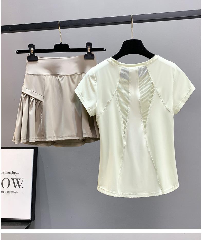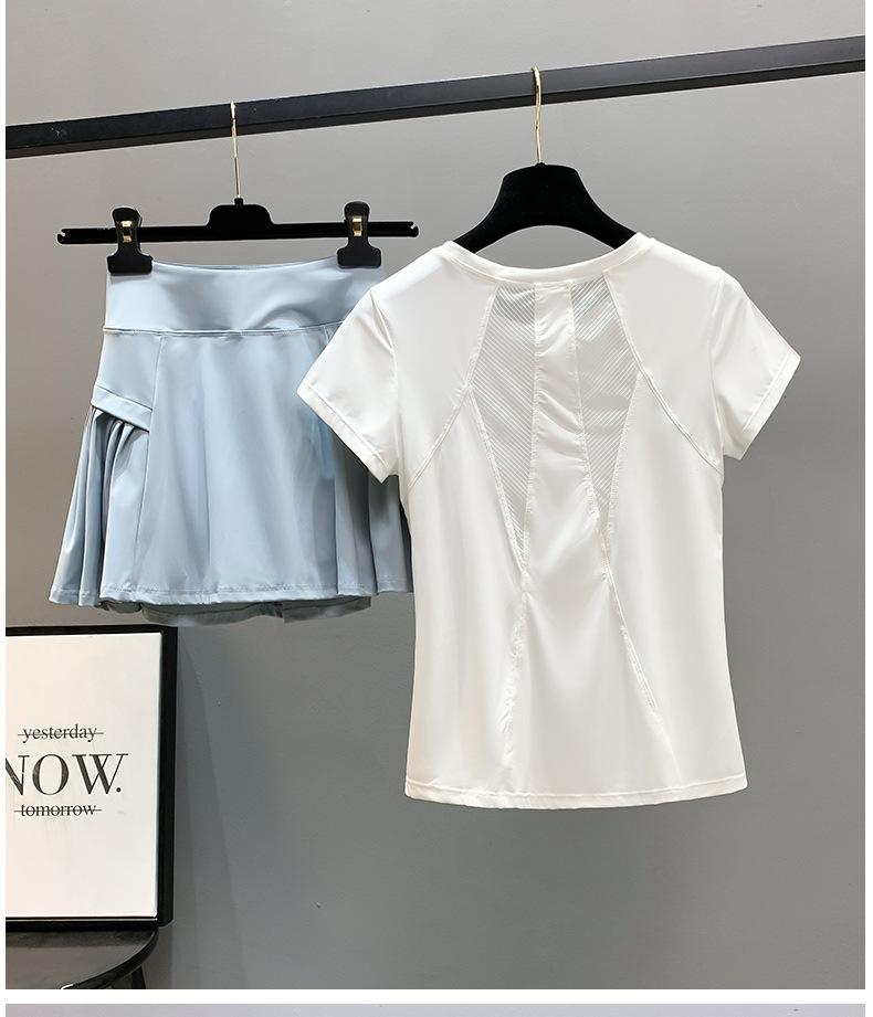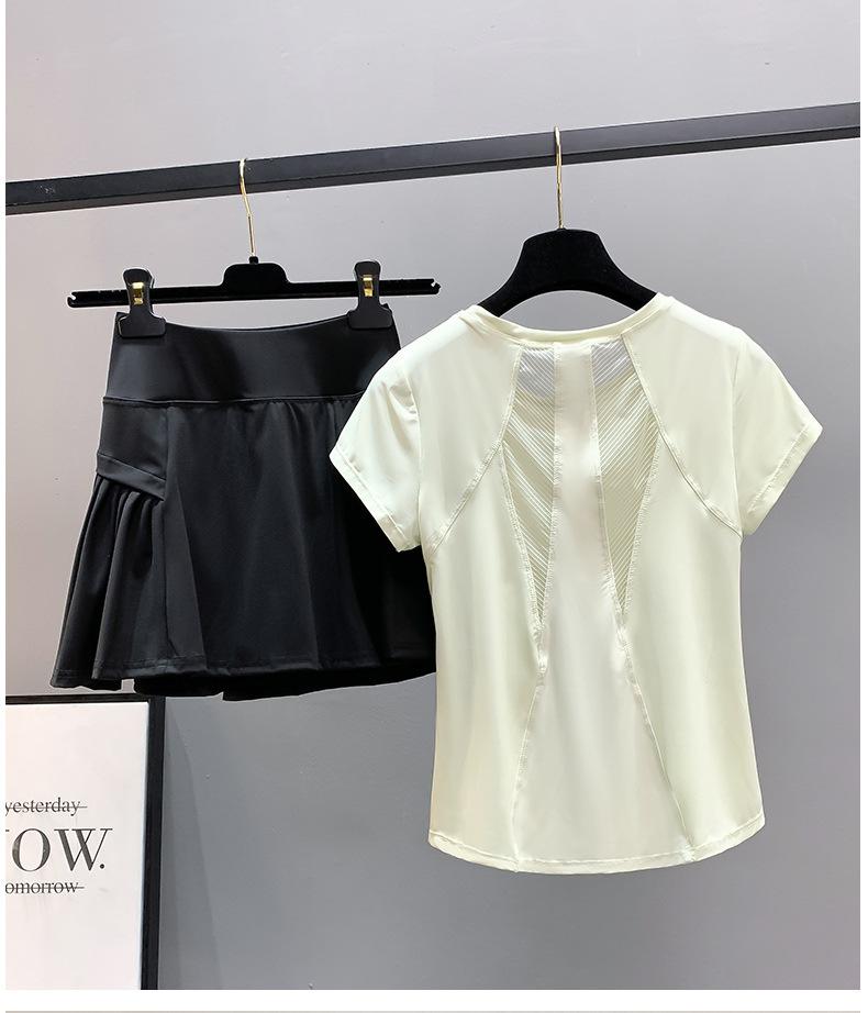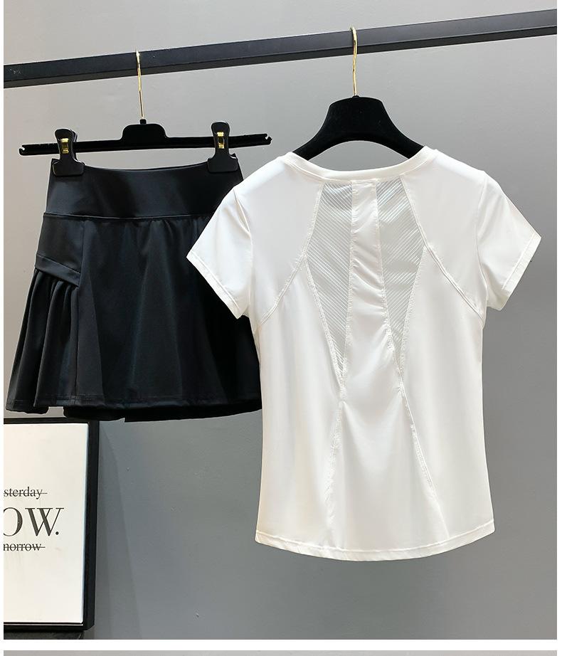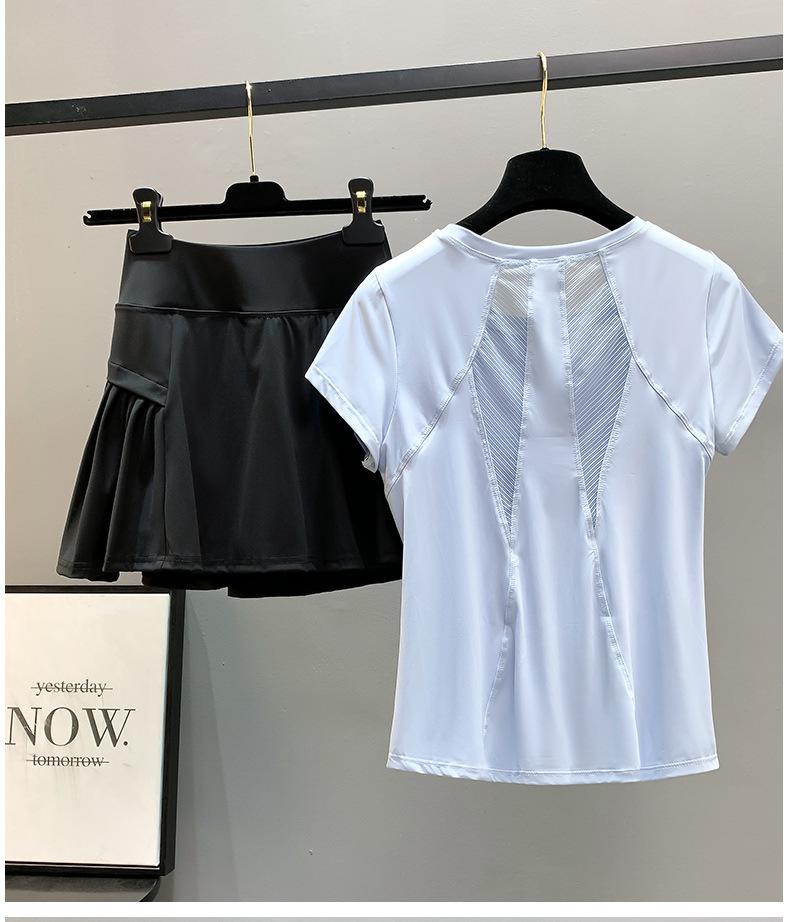 Traje de ropa de yoga para mujer de verano delgado bádminton adelgazante malla secado rápido top deportivo profesional para correr ropa de fitness