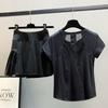 [2-piece] black short-sleeved black skirt