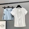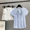 [2-piece] light blue short-sleeved white skirt