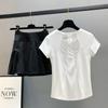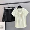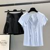 [2-piece set] white short-sleeved black skirt