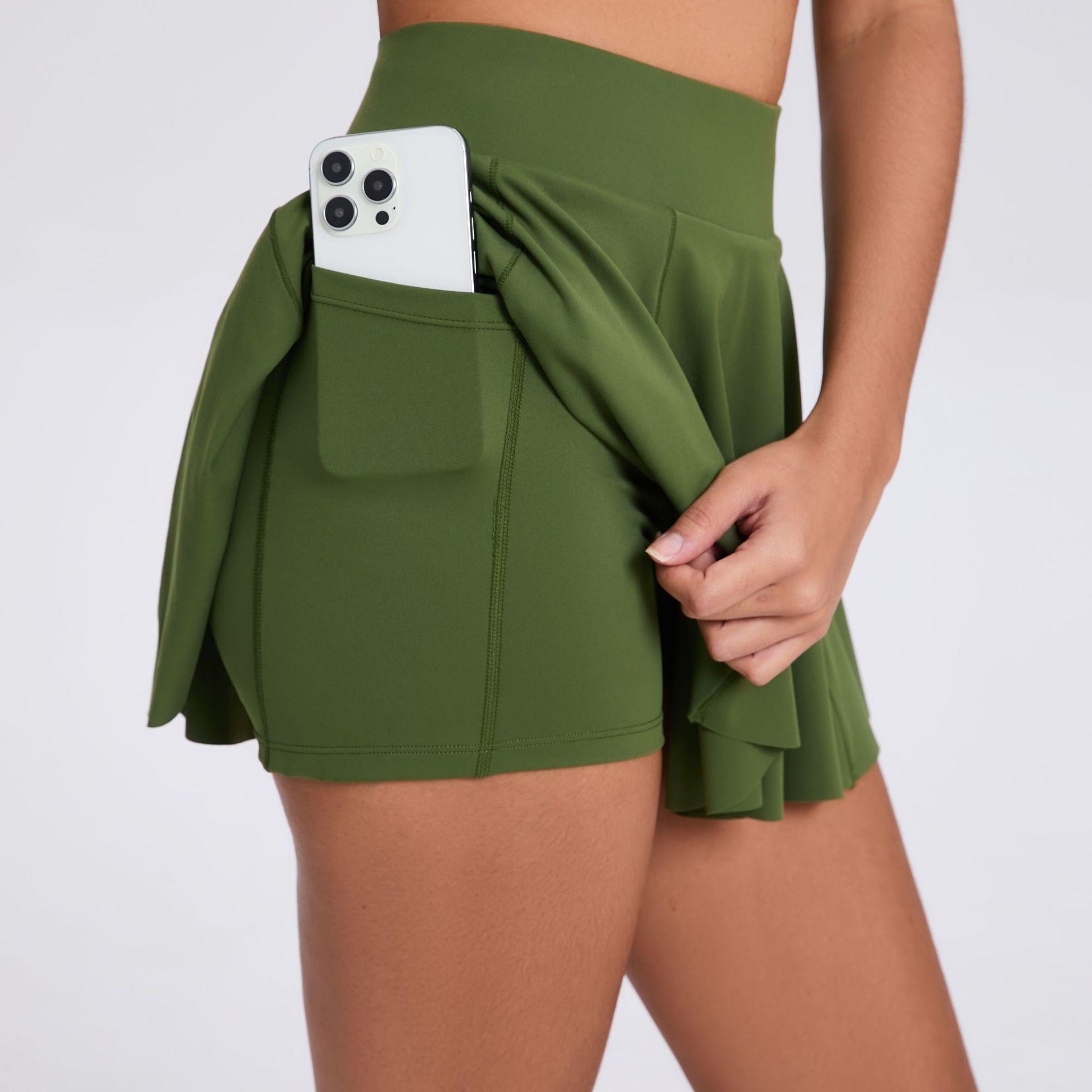Falda Deportiva Casual Plisada Europea y Americana para Mujer Falsa de Dos Piezas de Secado Rápido Falda de Tenis Antiluz Falda de Fitness 9905