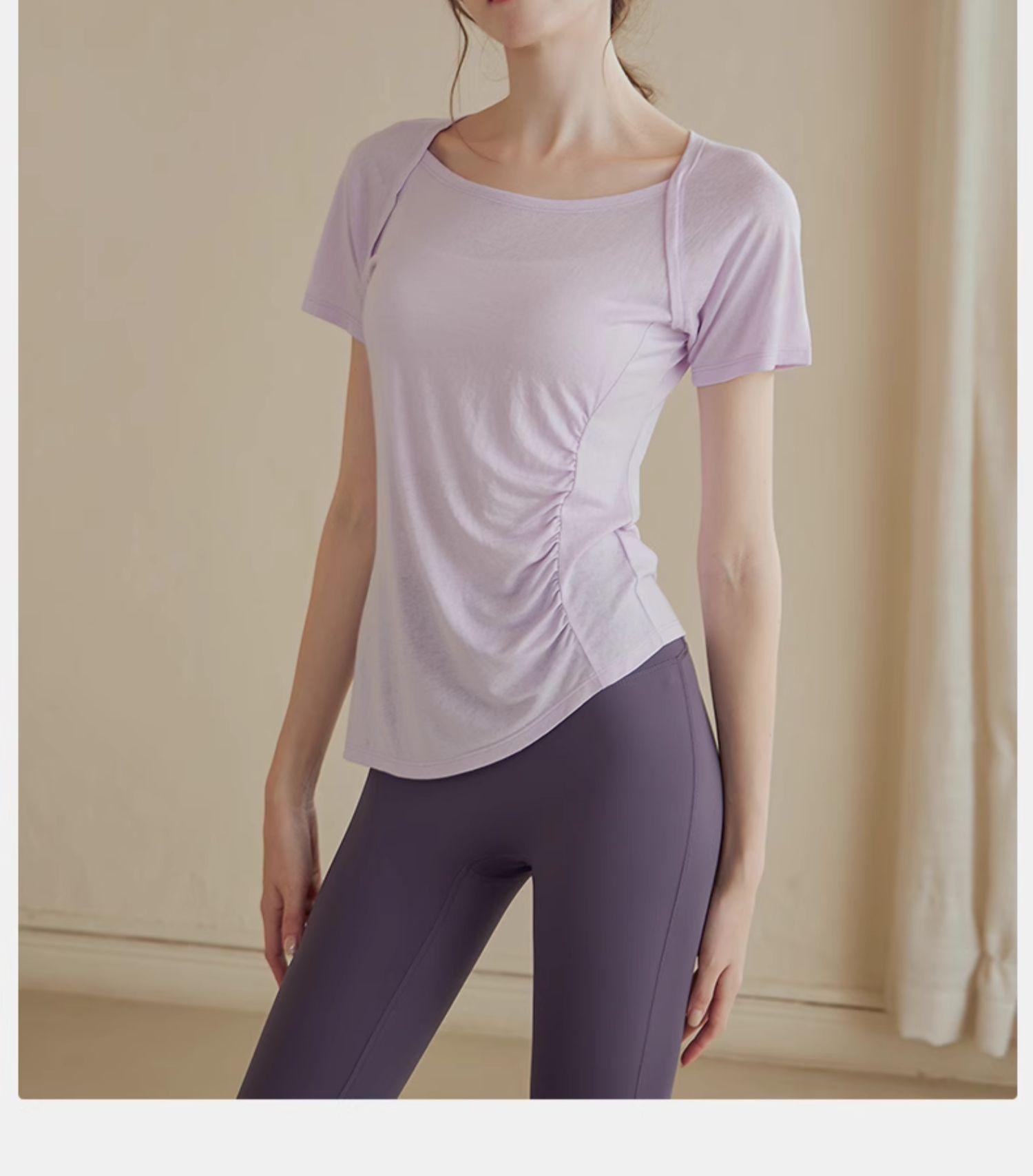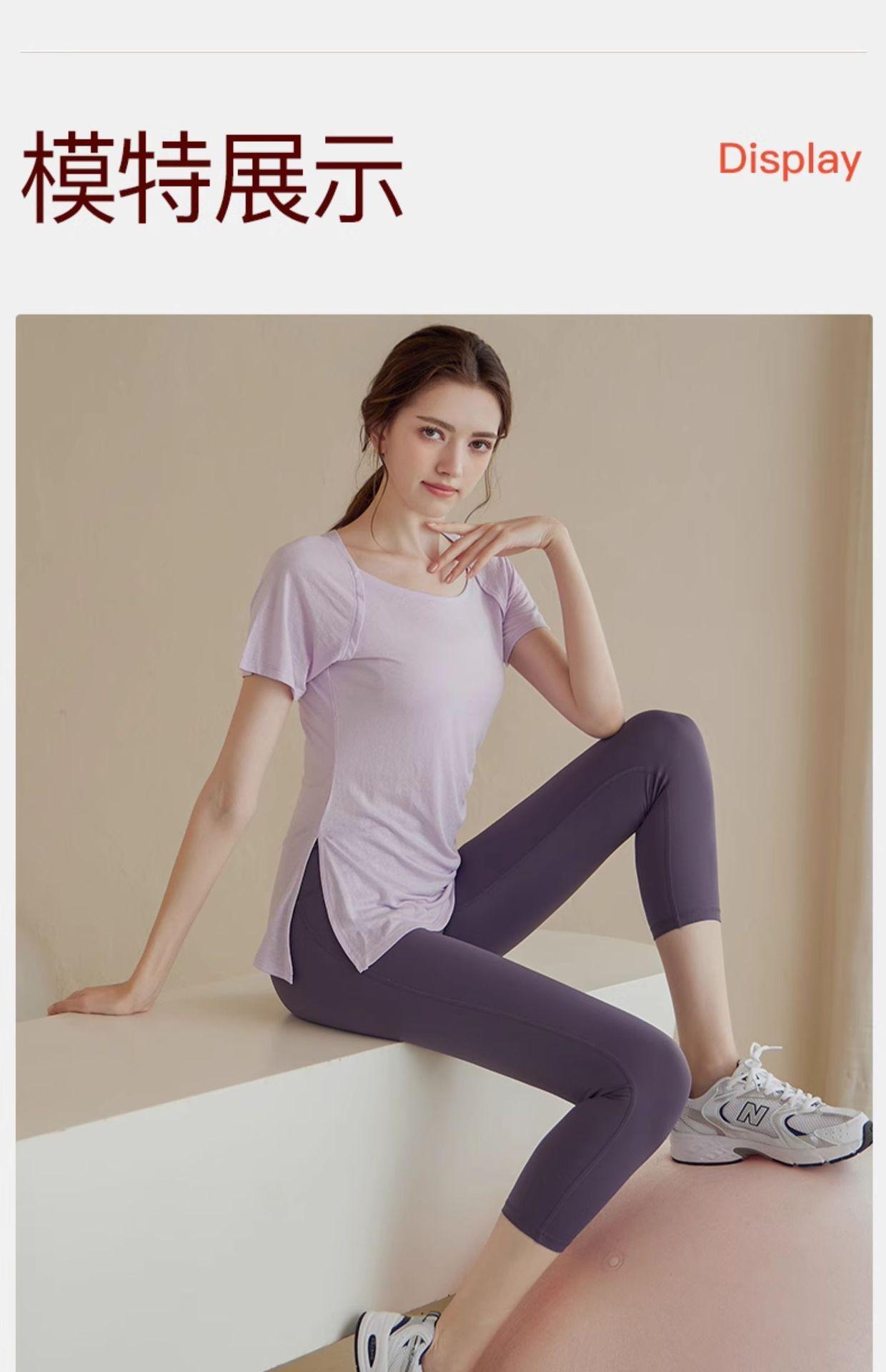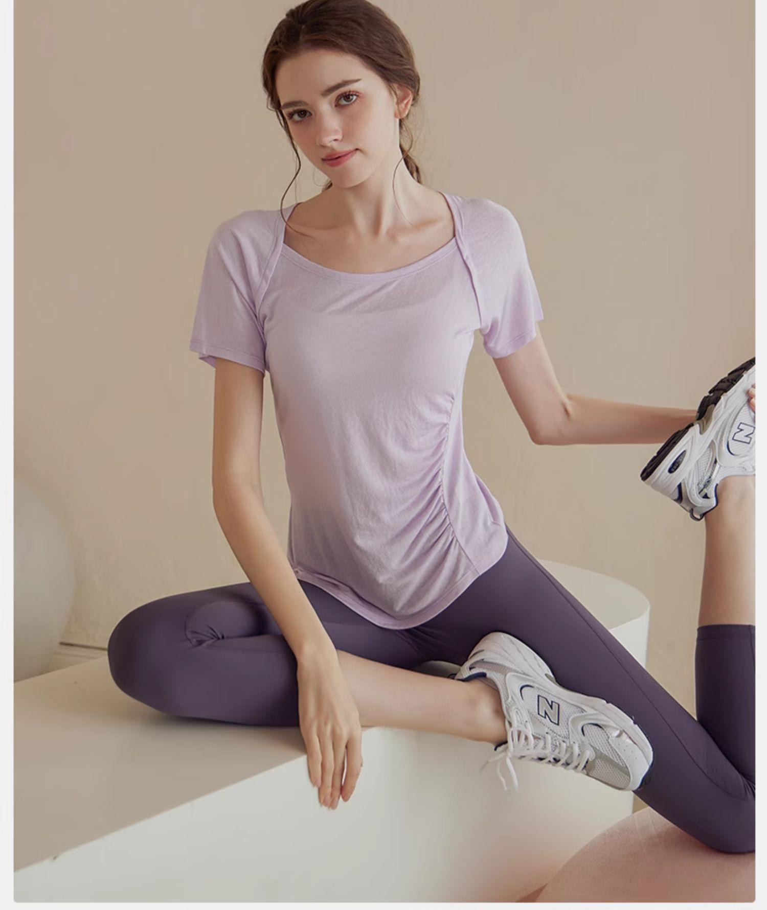 Traje de Yoga de Alta Gama para Mujer Top Deportivo de Manga Corta Adelgazante de Secado Rápido Ligero para Entrenamiento Pilates Fitness Traje de Verano