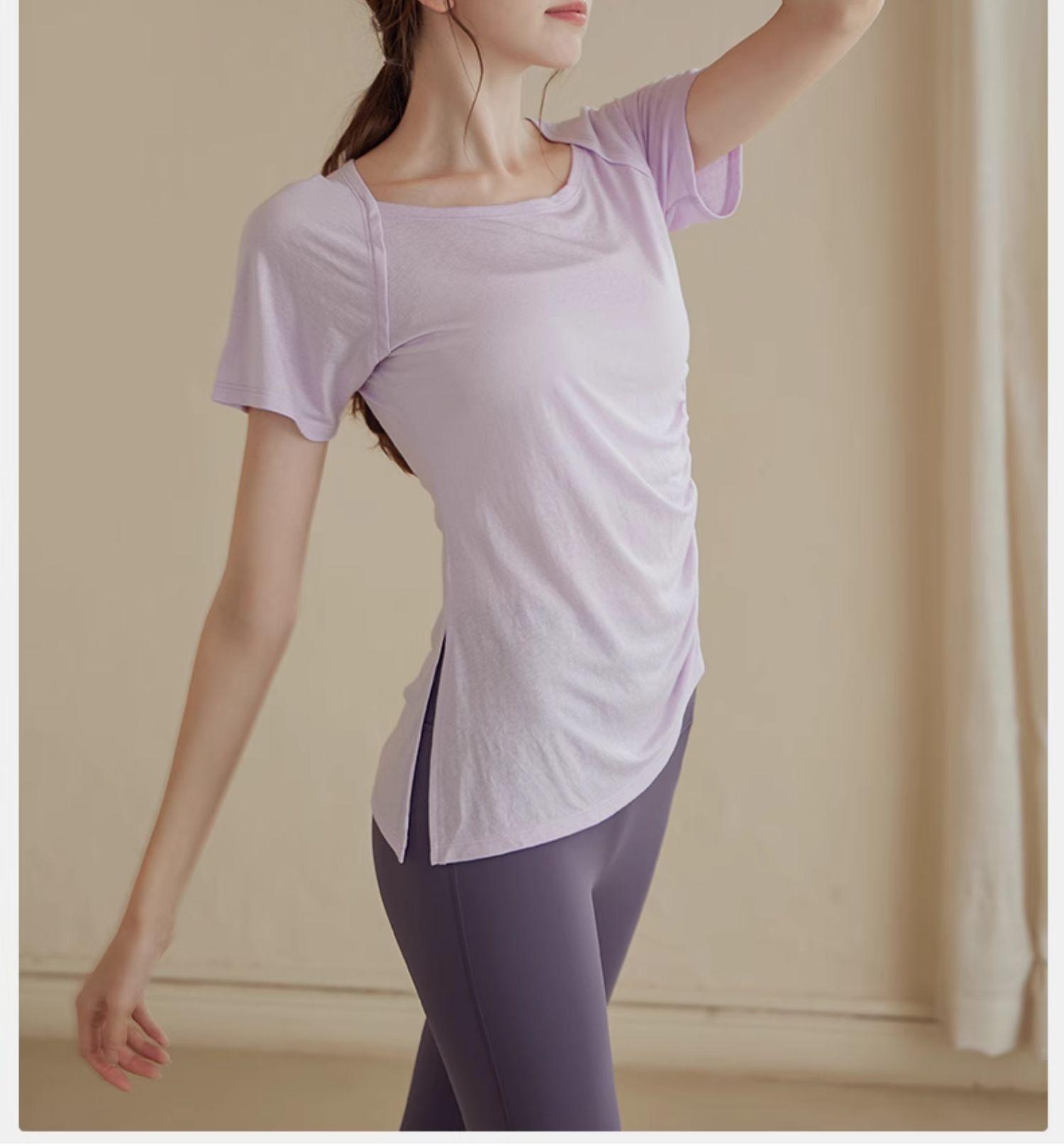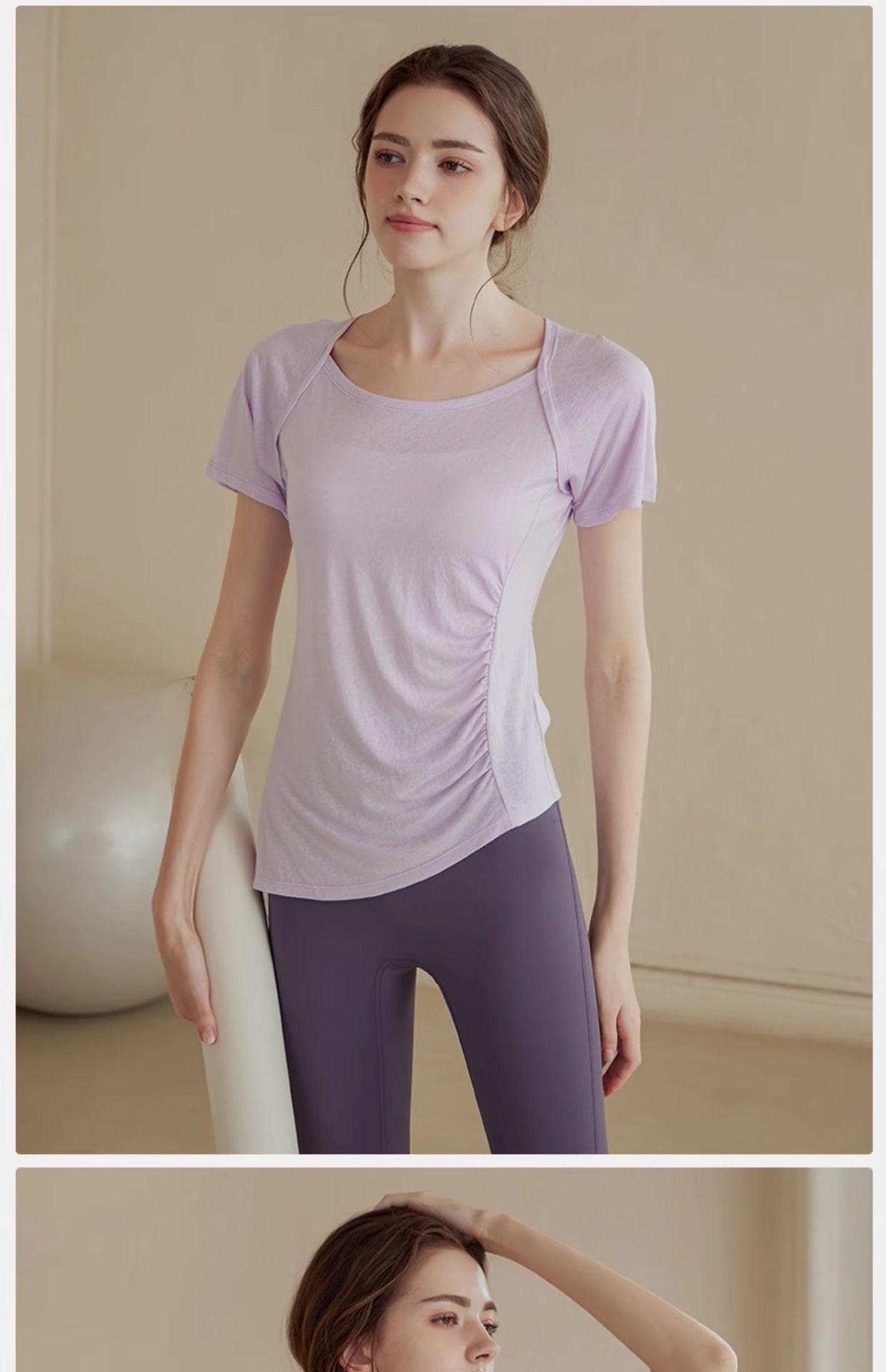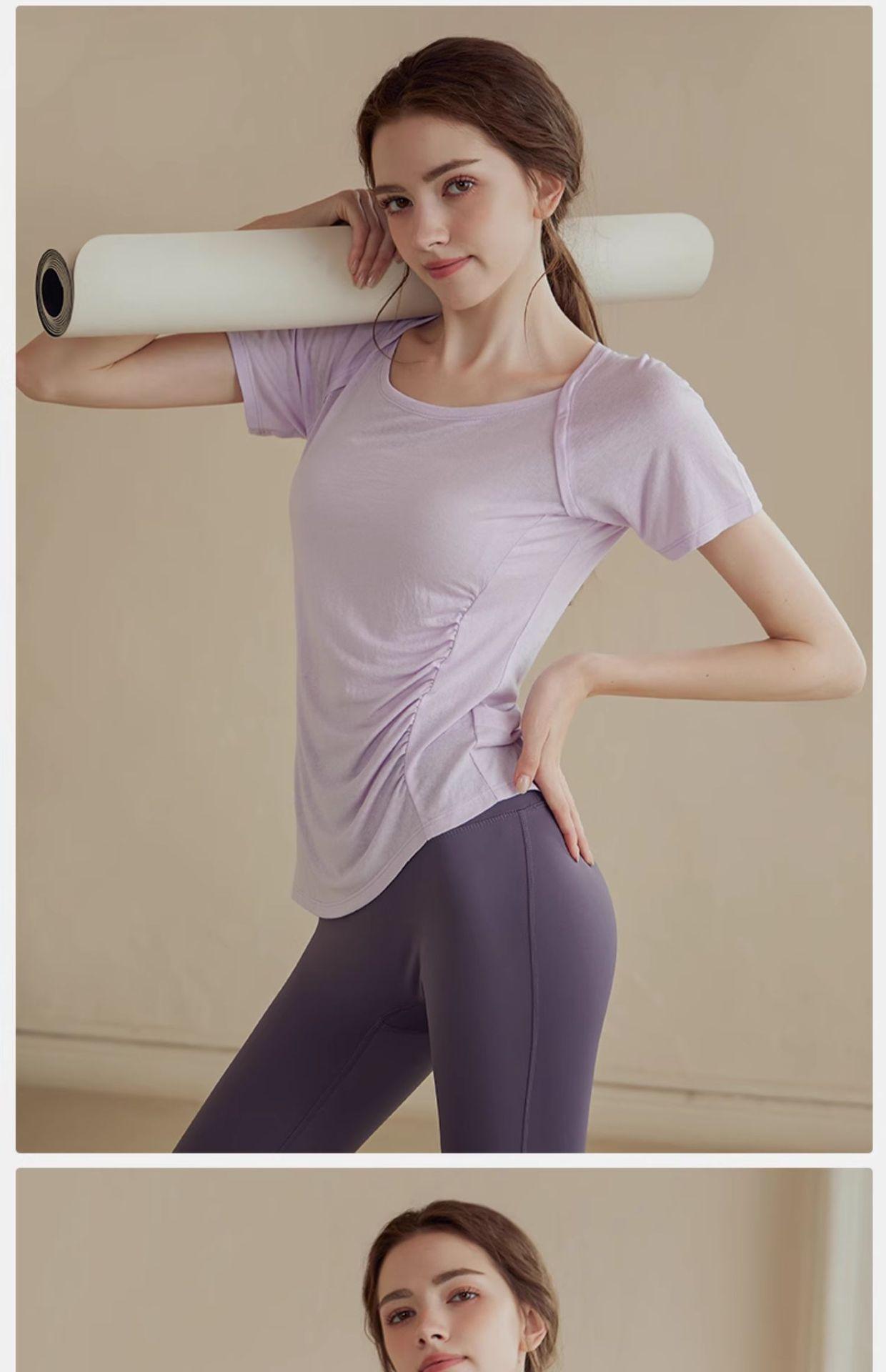 Traje de Yoga de Alta Gama para Mujer Top Deportivo de Manga Corta Adelgazante de Secado Rápido Ligero para Entrenamiento Pilates Fitness Traje de Verano