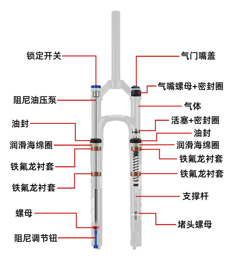 Material: Horquilla superior de aleación de aluminio, pata de la horquilla de aleación de magnesio