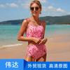 Traje de Bikini Nuevo Europeo y Americano de Encaje Estampado 2025 para Mujer con Cuello Halter Sexy Traje de Bikini Traje de Baño Venta al por Mayor