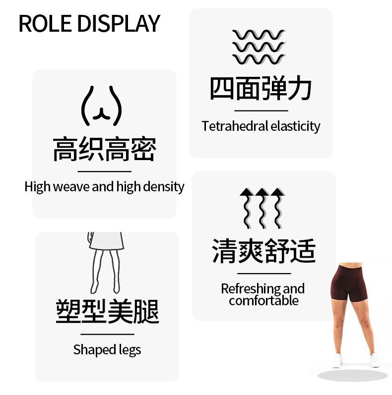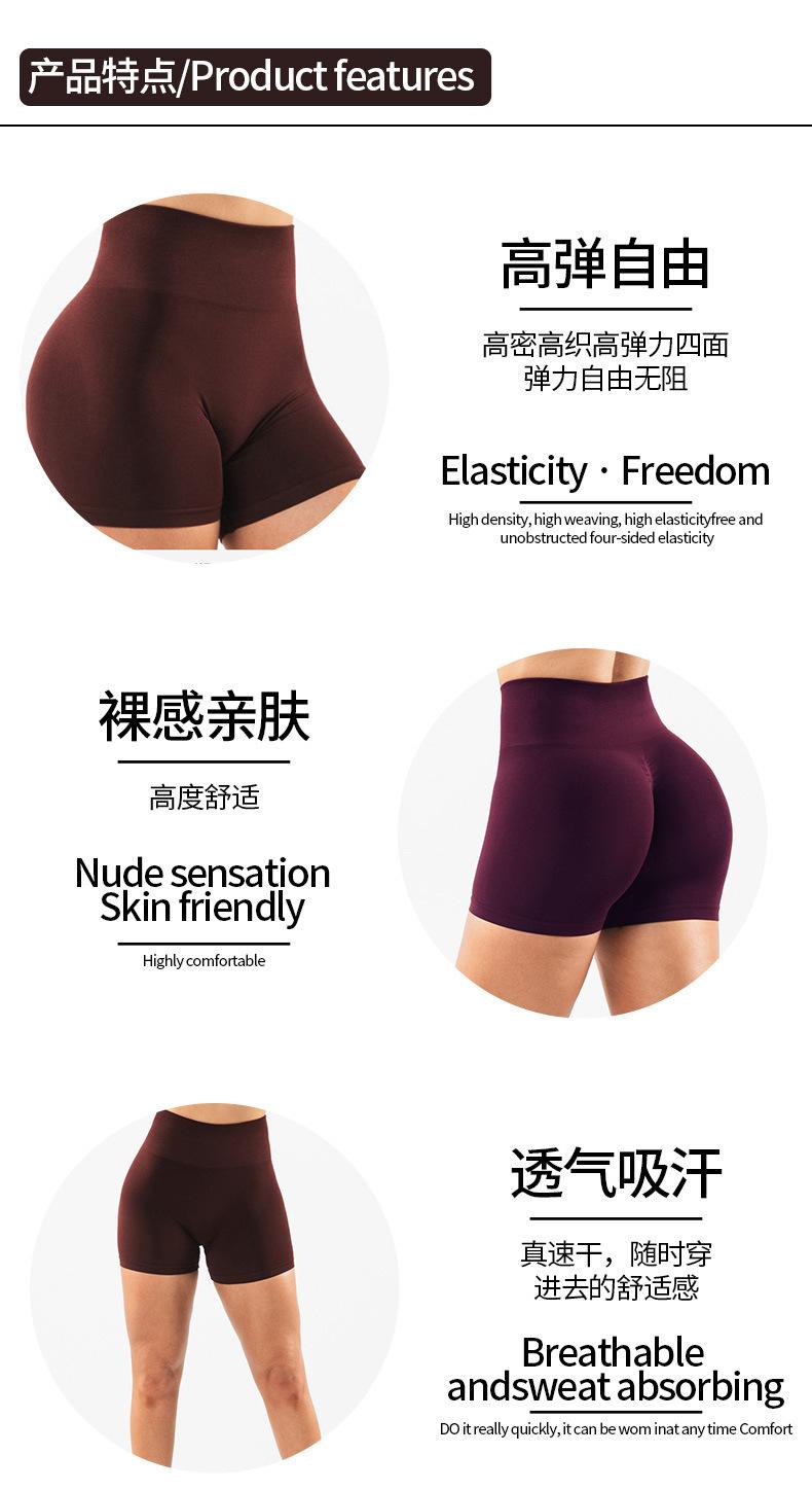 Pantalones cortos de yoga transfronterizos al por mayor, Lulu con cintura alta ajustada y sin costuras, de tres puntos, con estampado de melocotón desnudo.