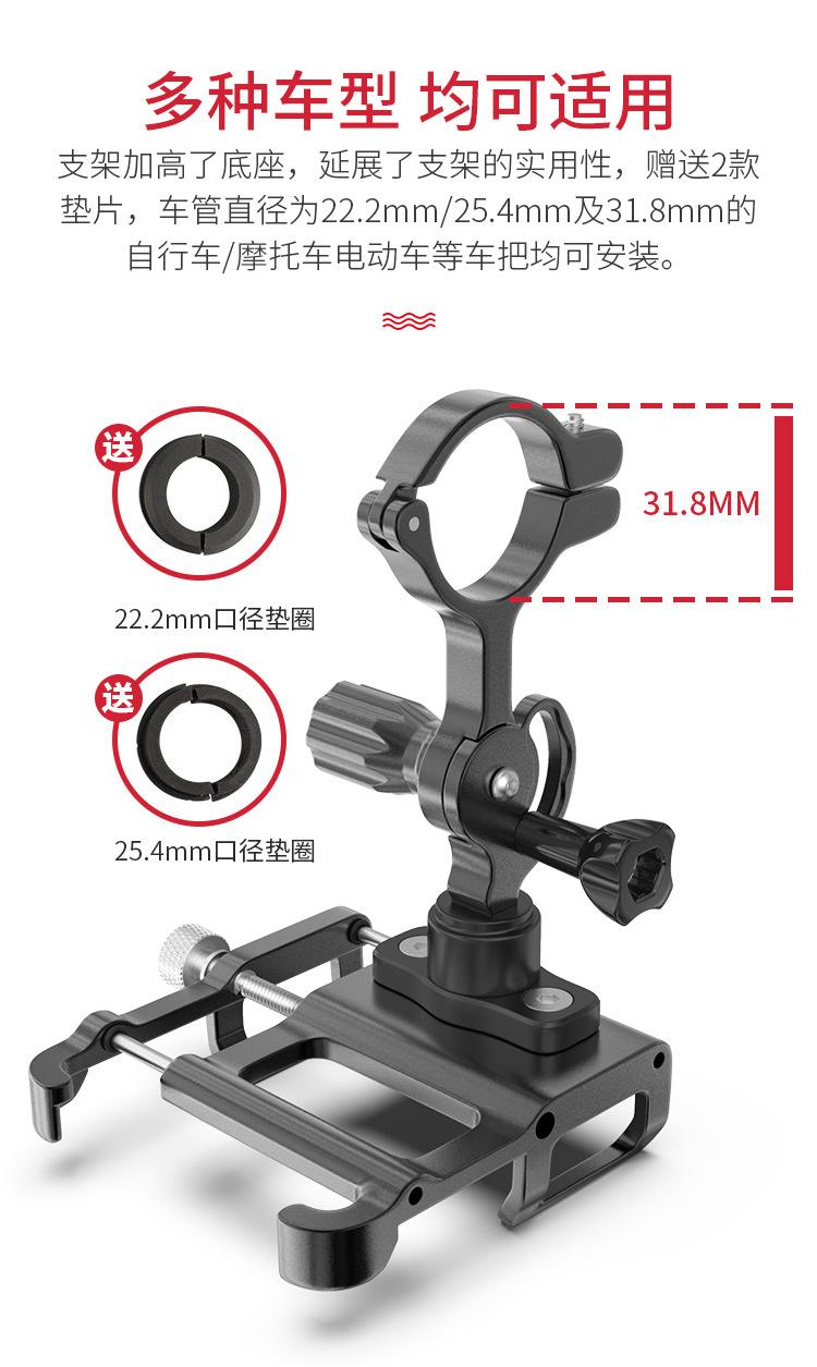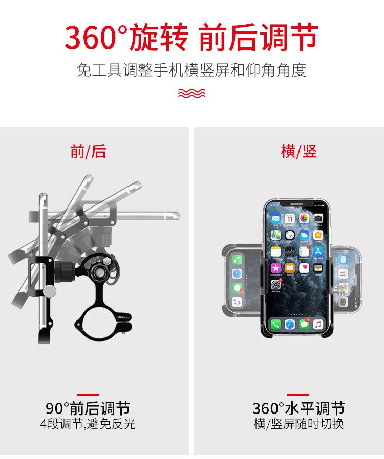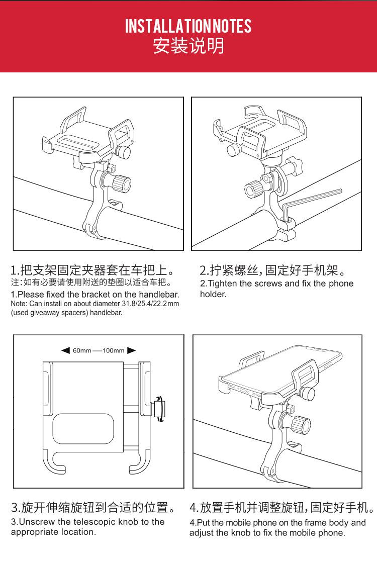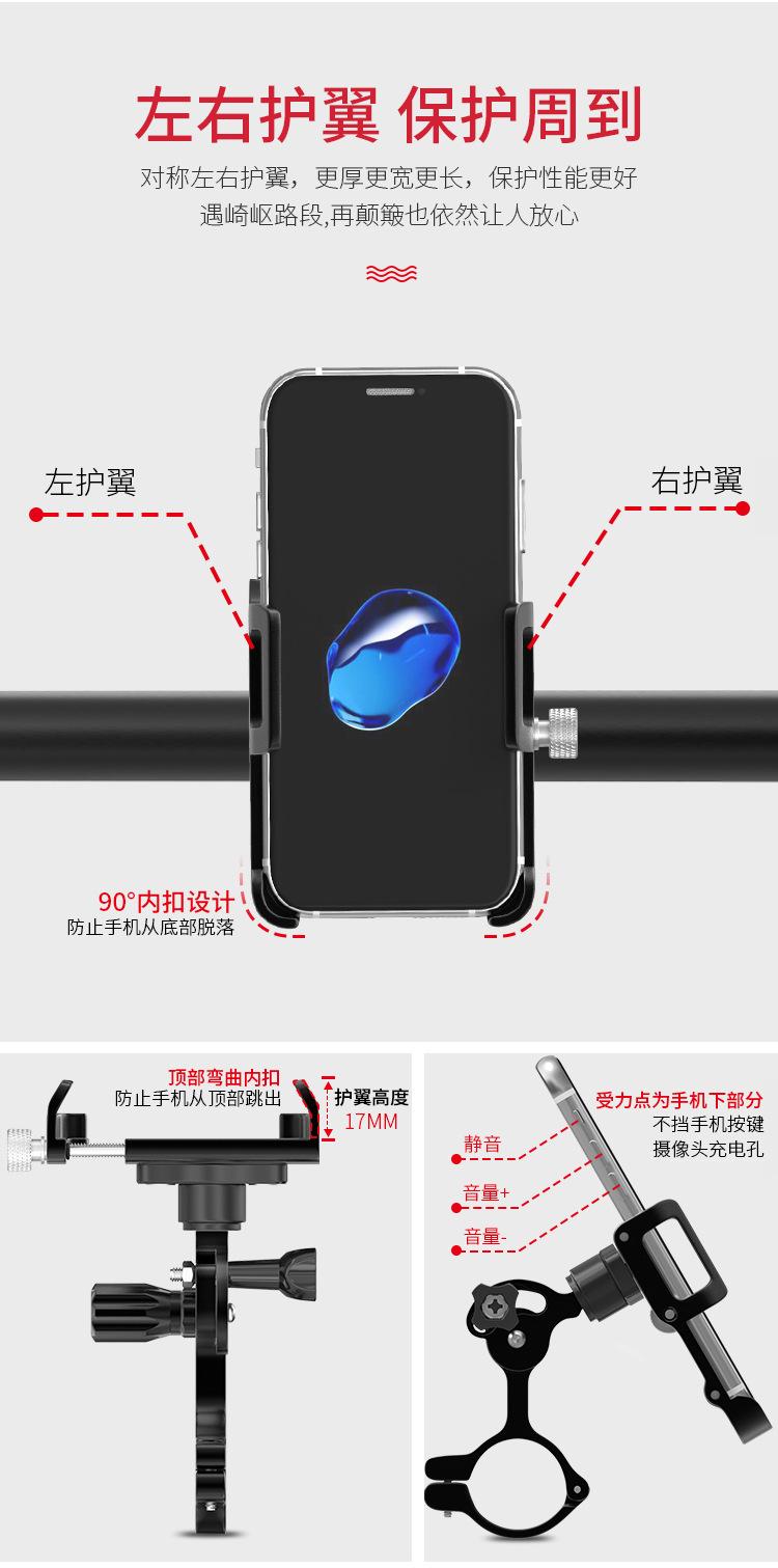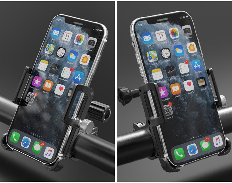 Características: Marco de aleación de aluminio, perillas de doble sujeción para evitar vibraciones, alta compatibilidad y no es exigente con los modelos de teléfono móvil, se puede usar en bicicletas, vehículos eléctricos, etc.!