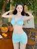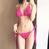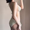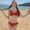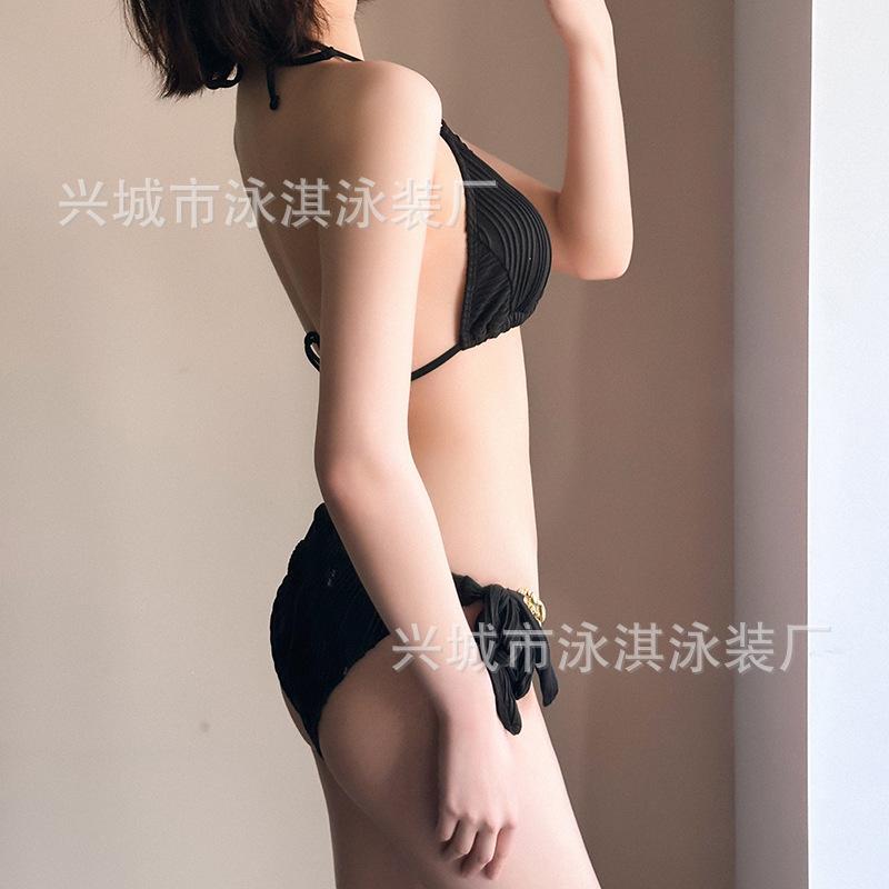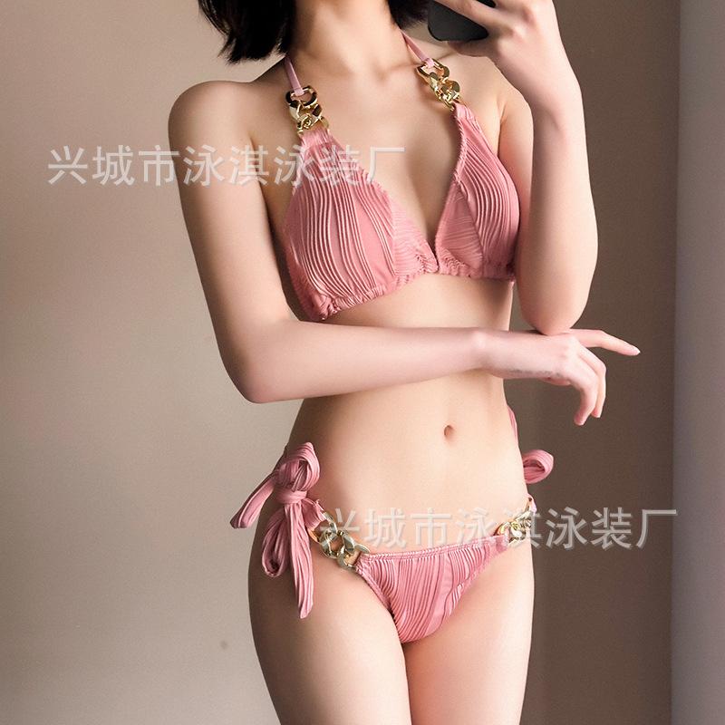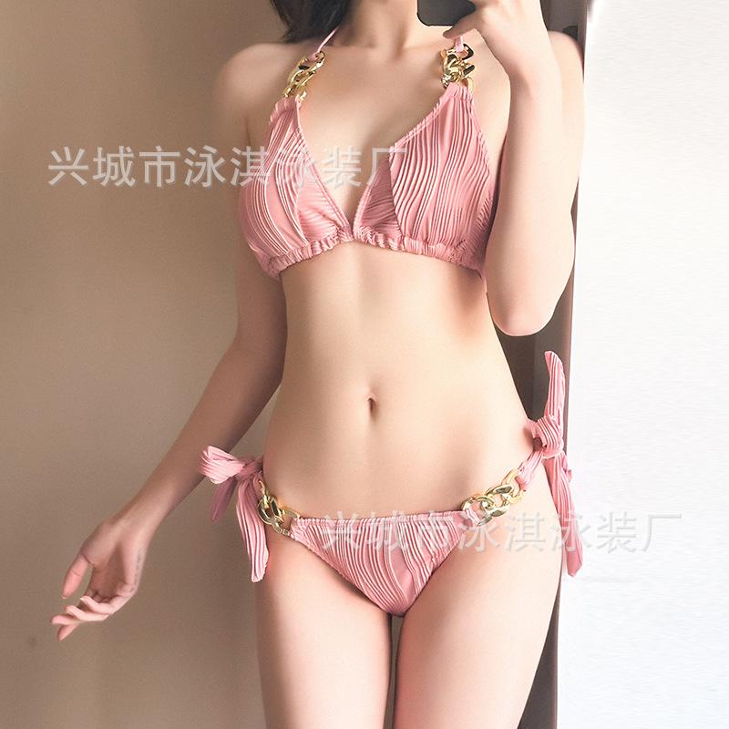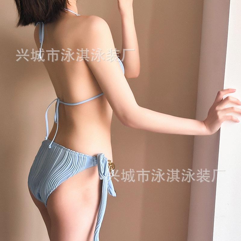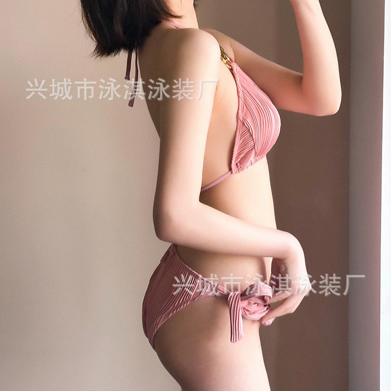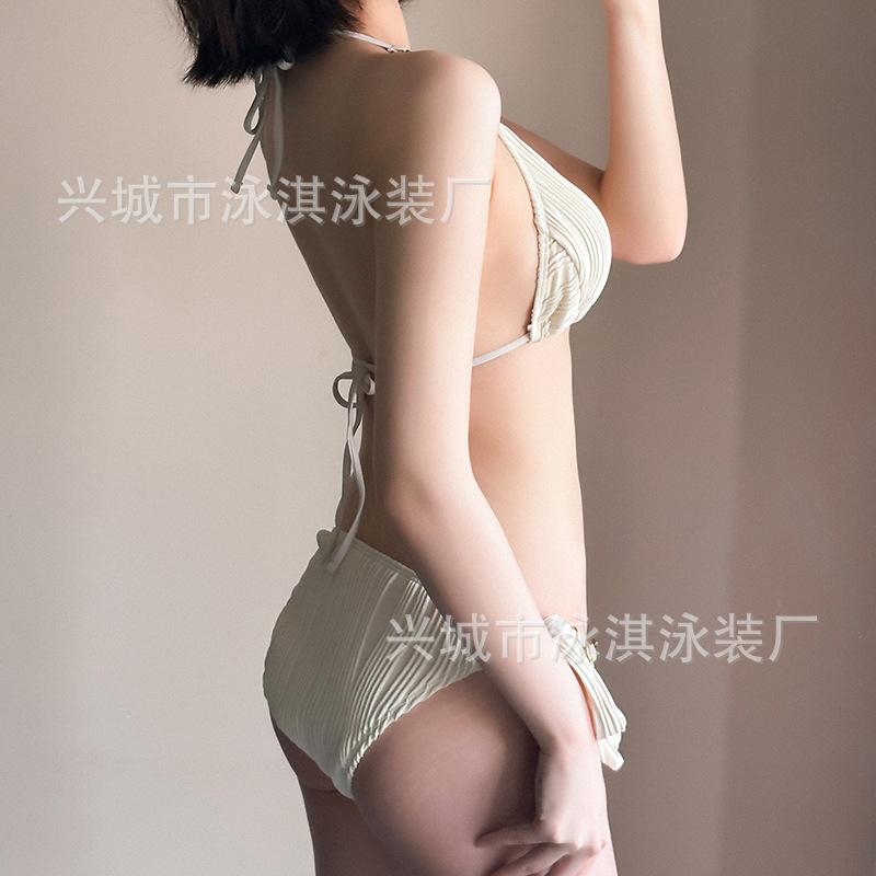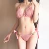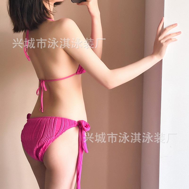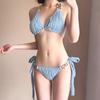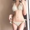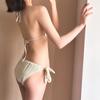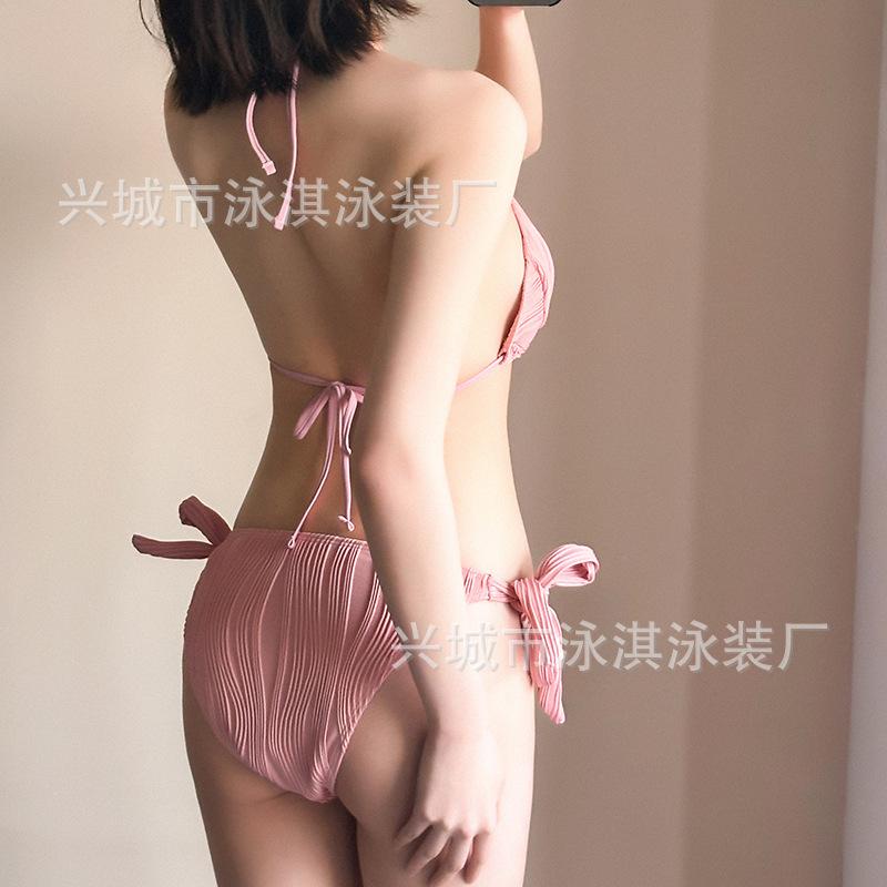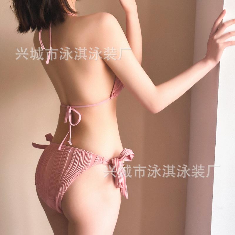 Traje de baño de alta gama dulce puro caliente chica onda tela simple atadura bikini dividido traje de baño de mujer