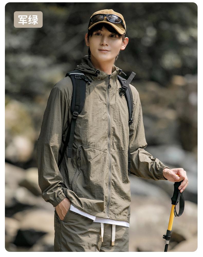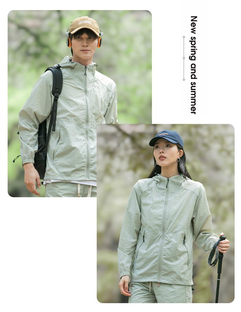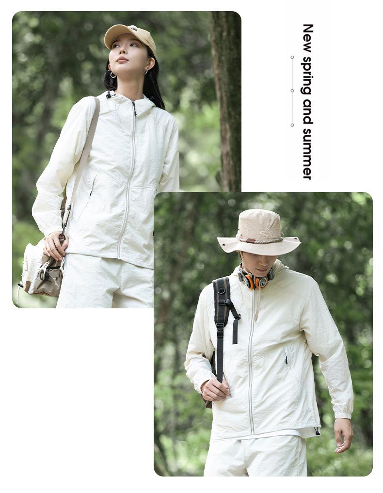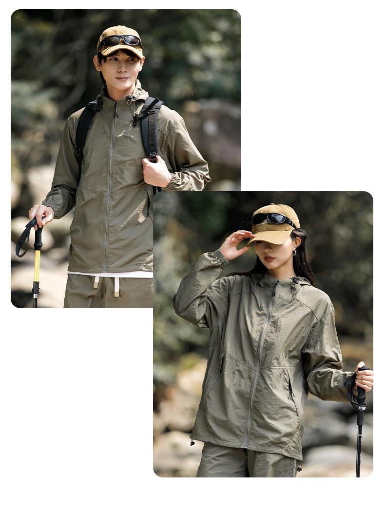 Ropa de Montaña para Exterior con Protección Solar para Hombre y Mujer Verano Nuevo Seda de Hielo Delgada Impermeable Ropa de Protección Solar Chaqueta con Capucha de Pareja a la Moda