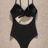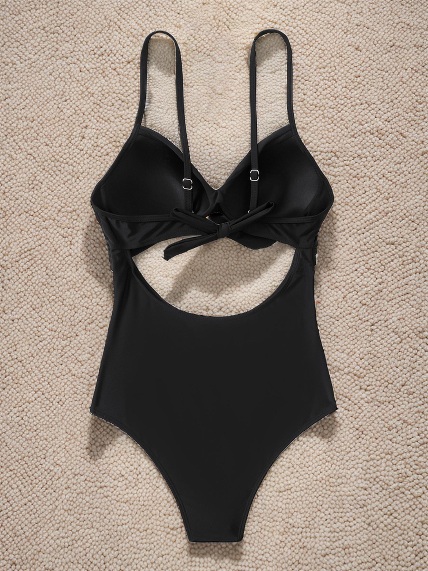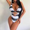 2024 Nuevo Sexy Color Puro Europeo y Americano Exportación Transfronteriza Corte Cruzado Arrugado Traje de Baño Traje de Baño de Una Pieza