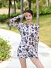 Blusa Floral Pequeña Fresca de Manga Larga con Protección Solar Set Conservador de Tres Piezas Deportivo Talla Grande Falda Traje de Baño para Mujer