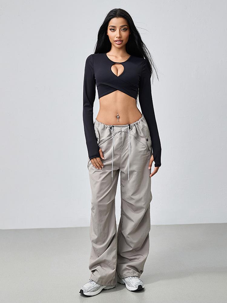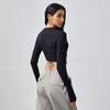Traje de yoga sexy con estampado de amor hueco para mujer, camiseta deportiva de manga larga con cruce frontal, ropa exterior para entrenamiento y fitness.