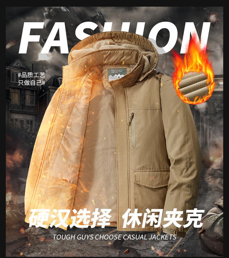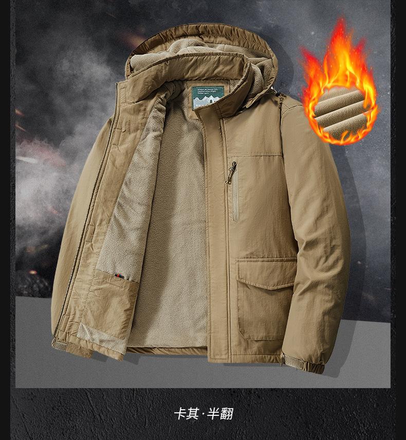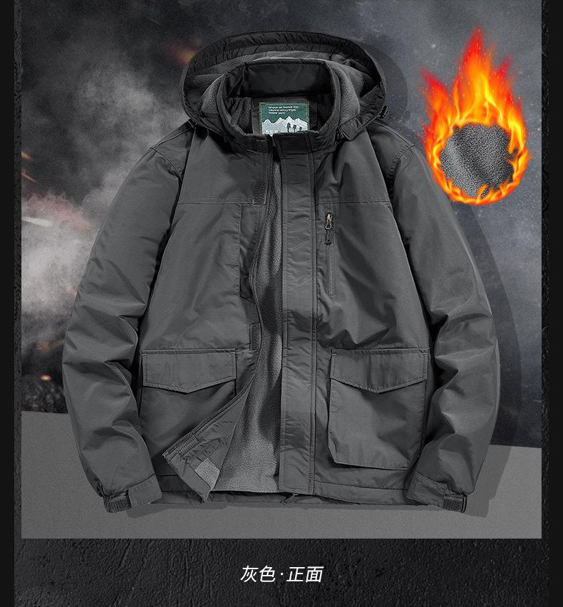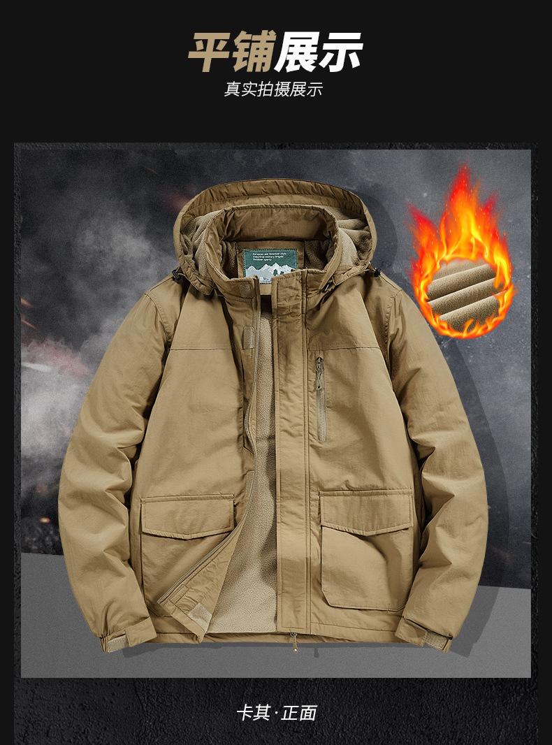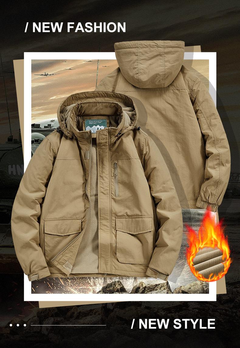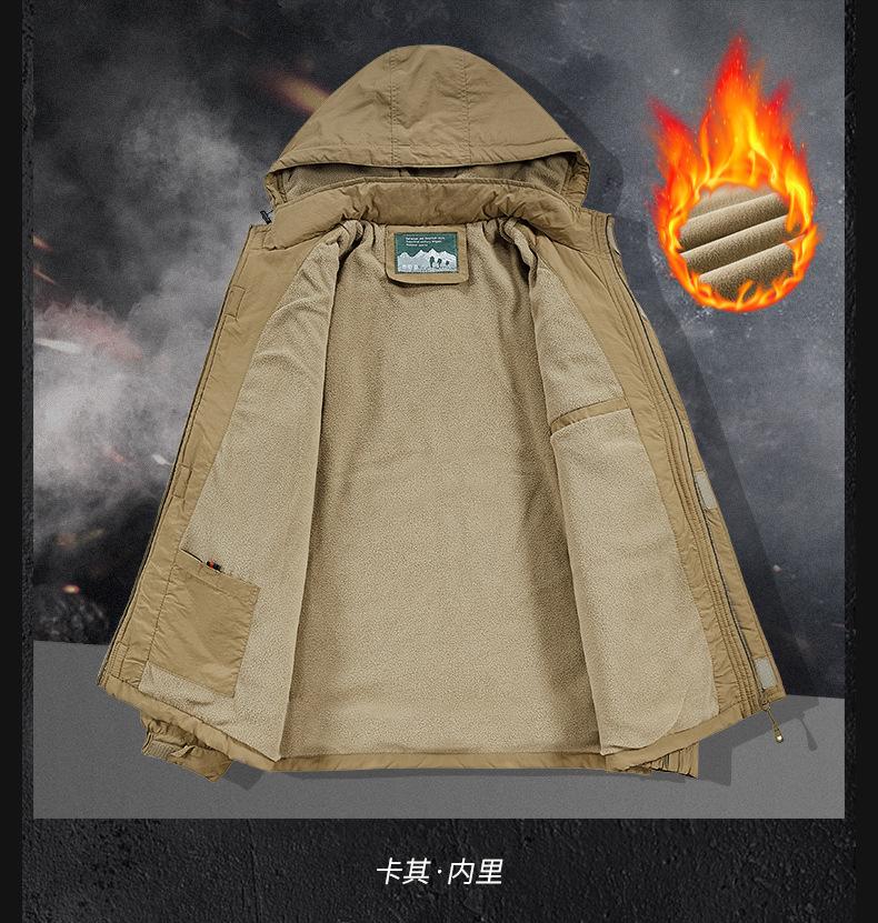 Nueva chaqueta de otoño e invierno para hombre, forrada con vellón, gruesa, resistente al viento, impermeable, cálida y transpirable, con capucha para exteriores.