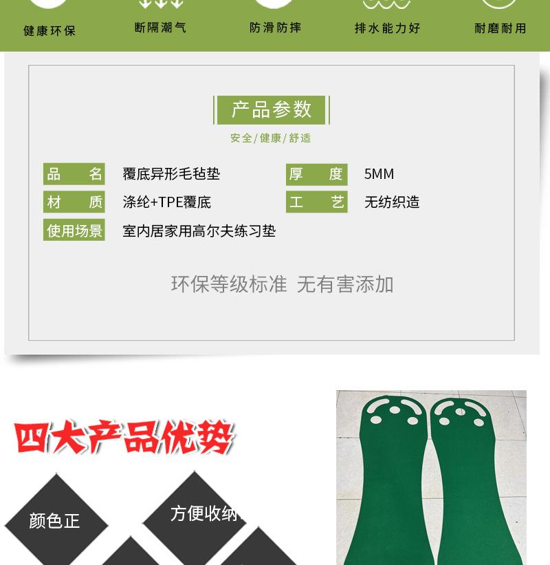 Putter de golf de interior verde, entrenador de pies grandes, mini manta de práctica de golf verde, suministro directo de fábrica