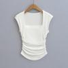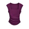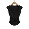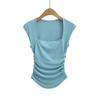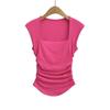 Chaleco plisado de escote trapecio para chica hot para mujer 2024 nuevo estilo Lujuria pura Sexy Delgado Ropa exterior delgada Top sin mangas