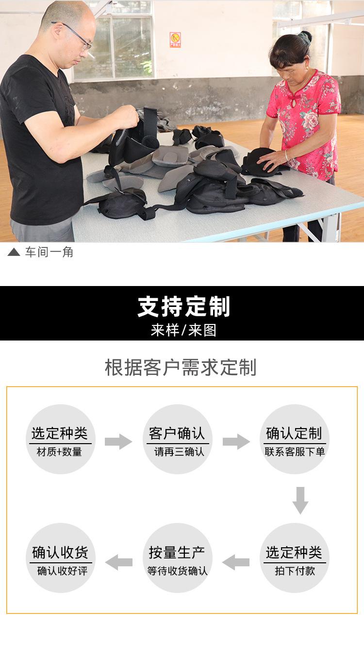 Pvc plastic shell, 900d waterproof fabric, full nylon velcro, lined with eva, thickened high-elastic elastic band, metal buckle