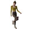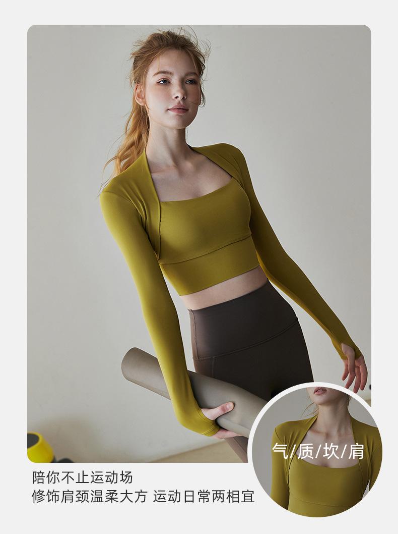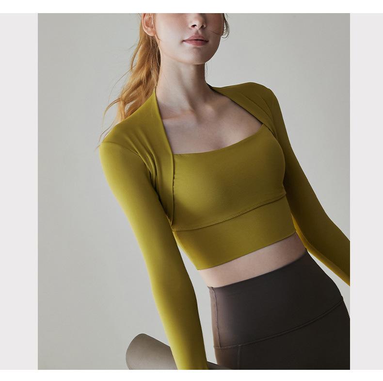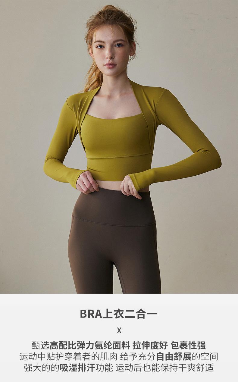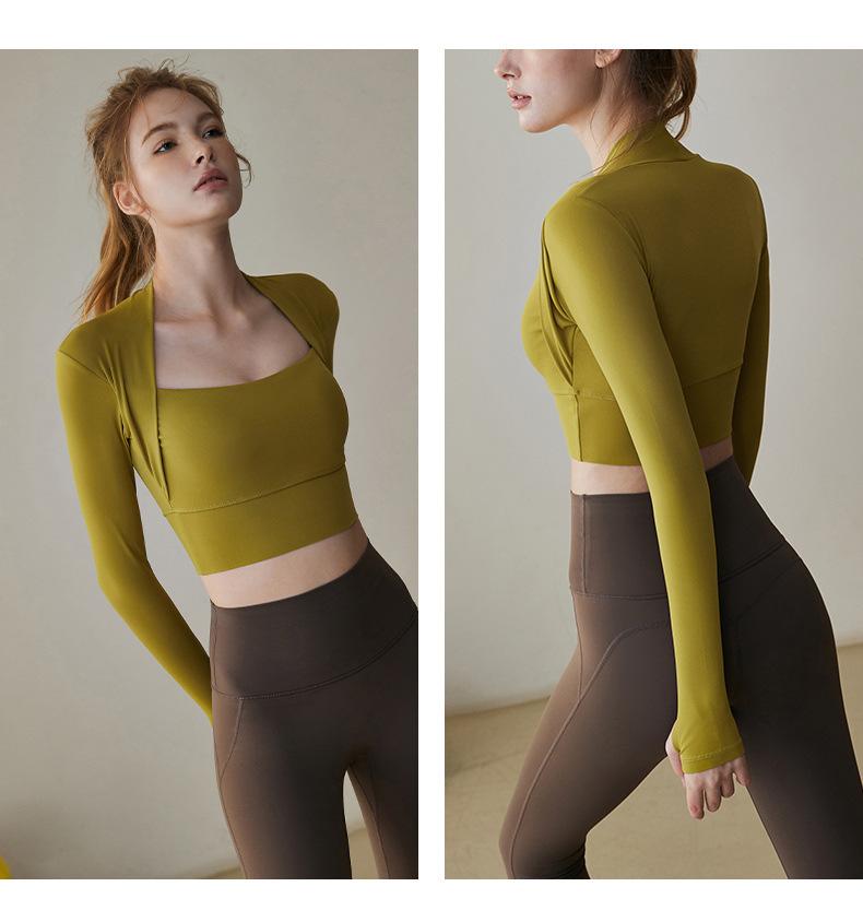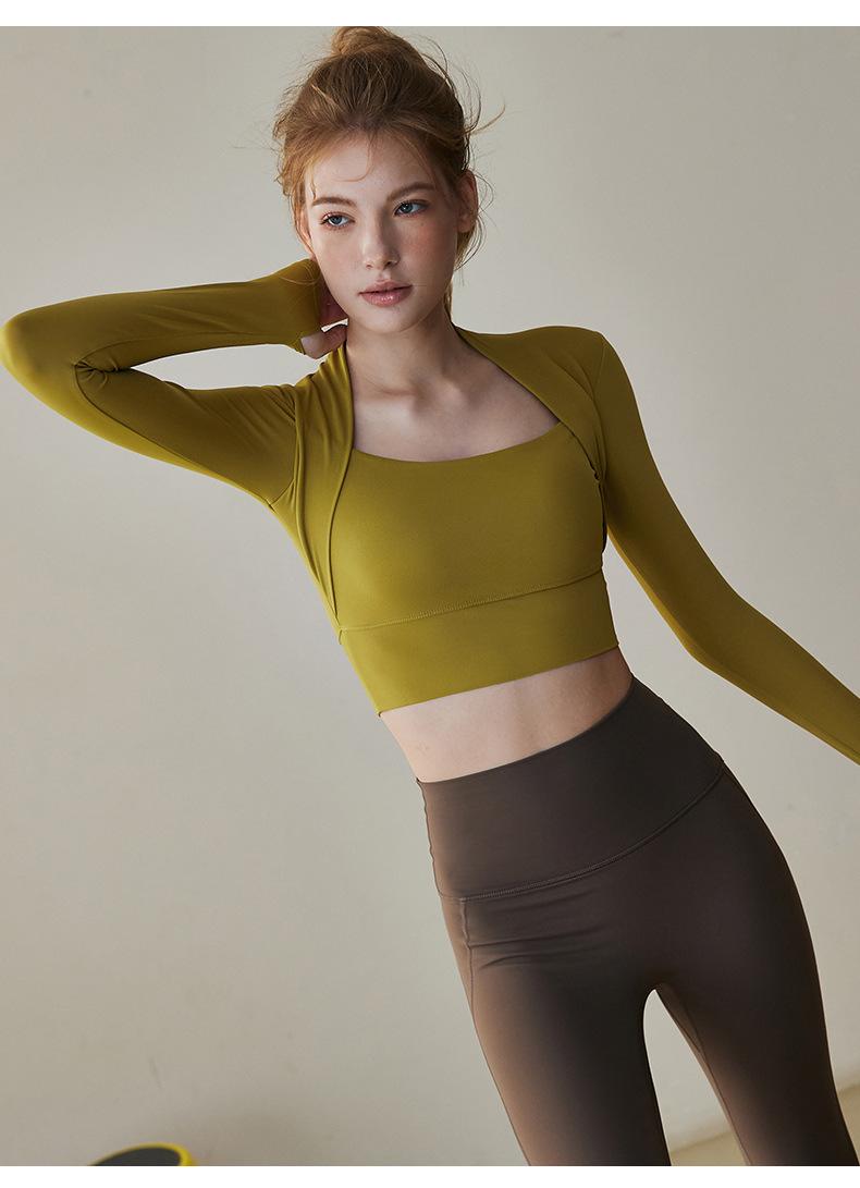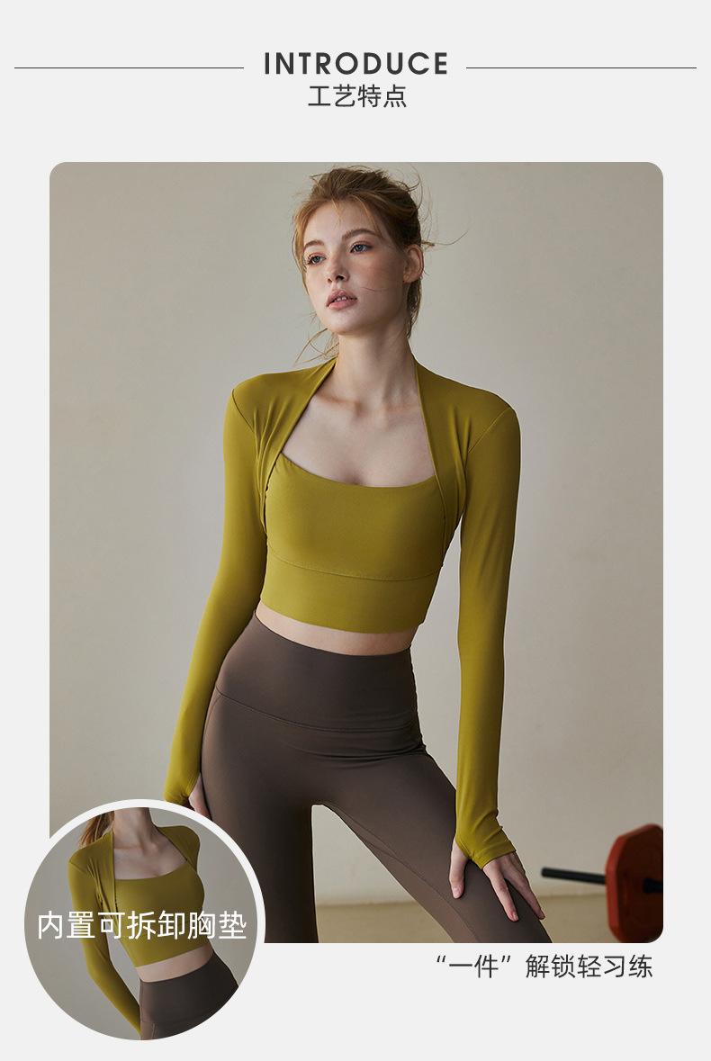 Ropa de Yoga Falsa de Dos Piezas, Tops de Fitness de Manga Larga para Mujer Estilo Nuevo de Otoño e Invierno con Almohadillas en el Pecho, Ropa Profesional para Entrenamiento de Pilates