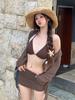 Bikini de tres piezas con escote pronunciado y manga larga para mujer, estilo Spice Girl, con abertura en la parte delantera y trasera.