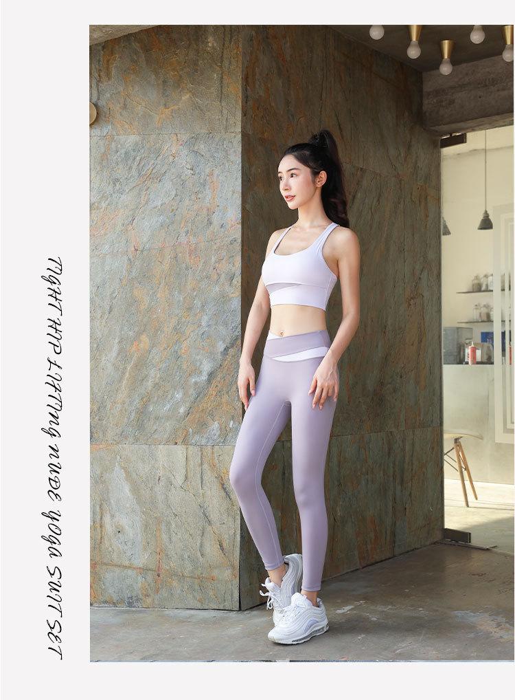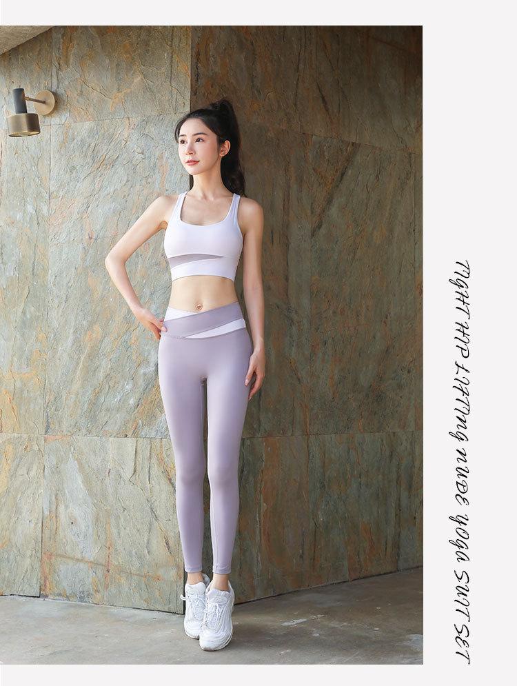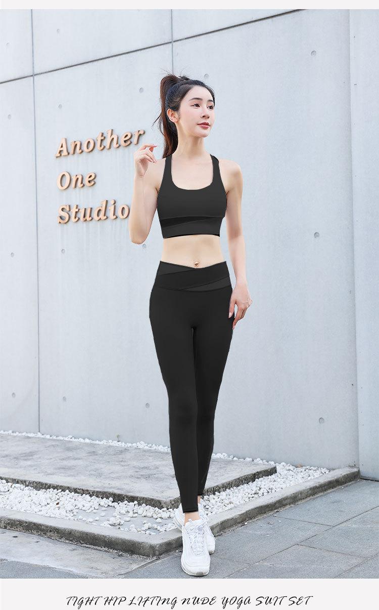 Conjunto de Ropa de Yoga Elástica para Mujer, Pantalones Deportivos de Nailon de Doble Cara con Sensación Nude, Conjunto de Dos Piezas para Correr, Entrenar, Fitness, Alta Elasticidad