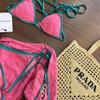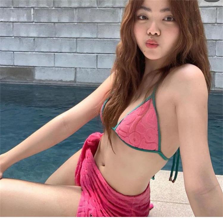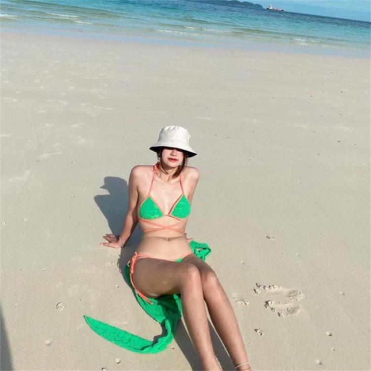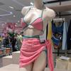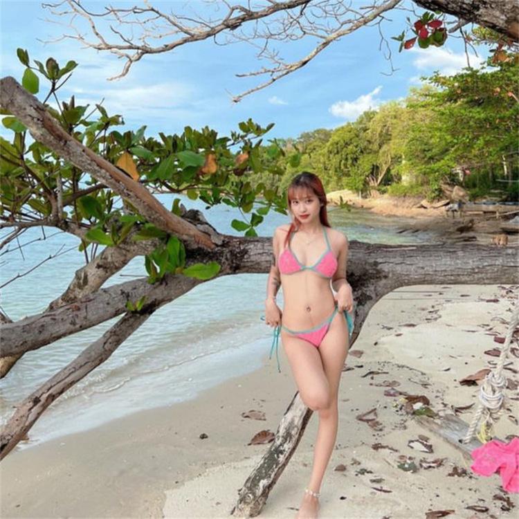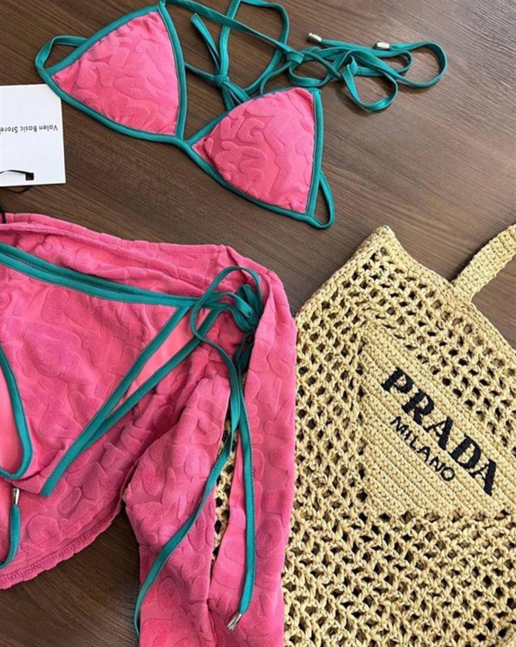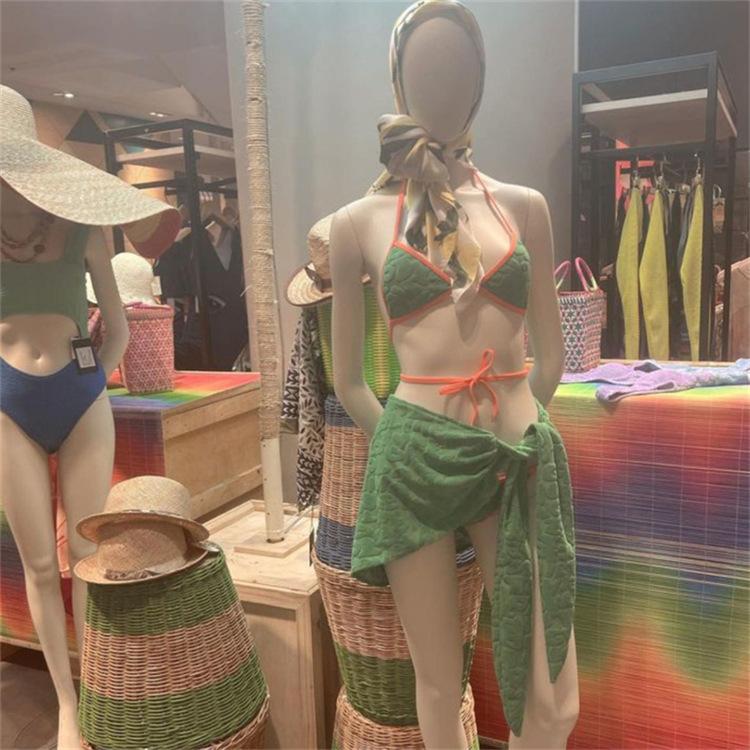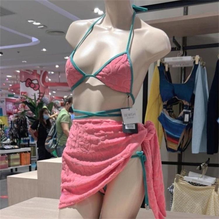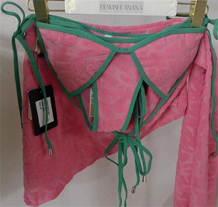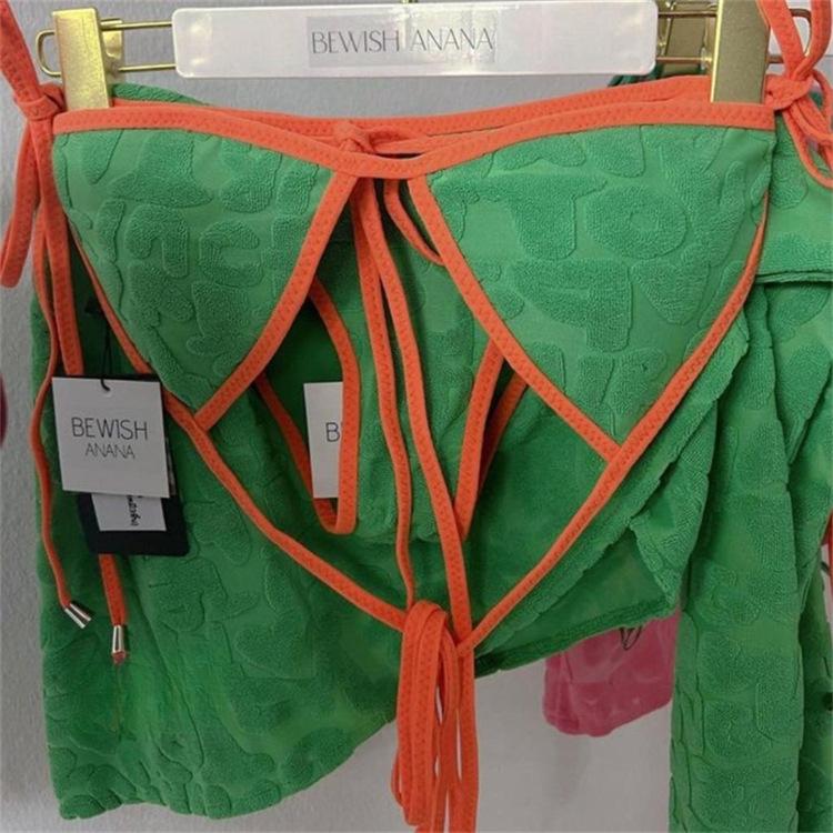 Bikini de tres piezas, ligero, de lujo, sencillo, de tela tridimensional, sexy, con escote pequeño y falda sencilla para mujer