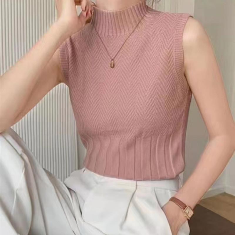 Camisola de punto para mujer, nueva camiseta de primavera y otoño, ajustada, de cuello medio alto, con top sin mangas y traje, 2023