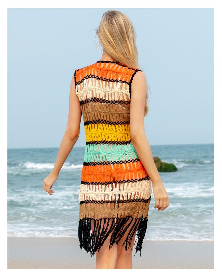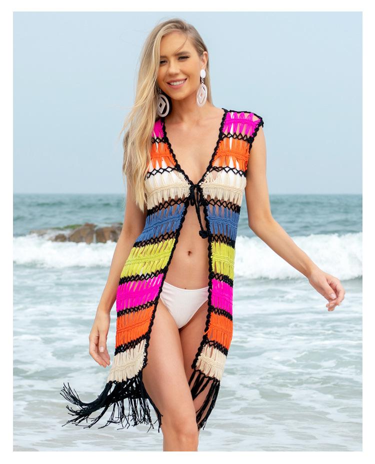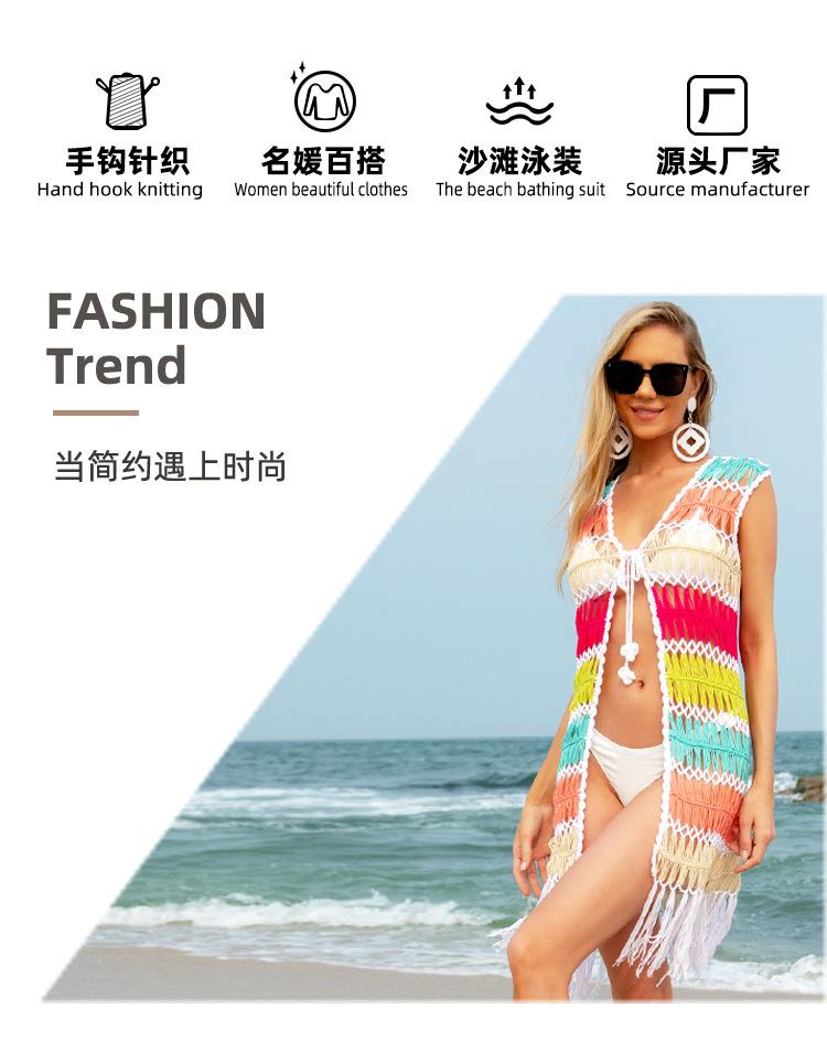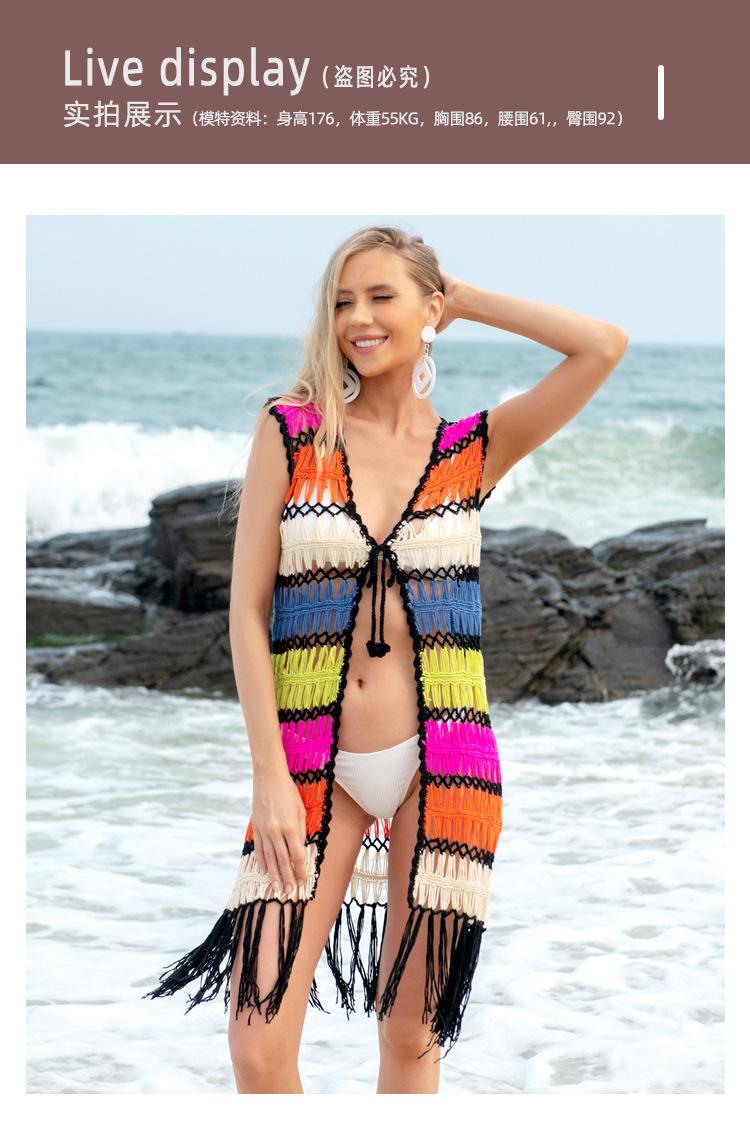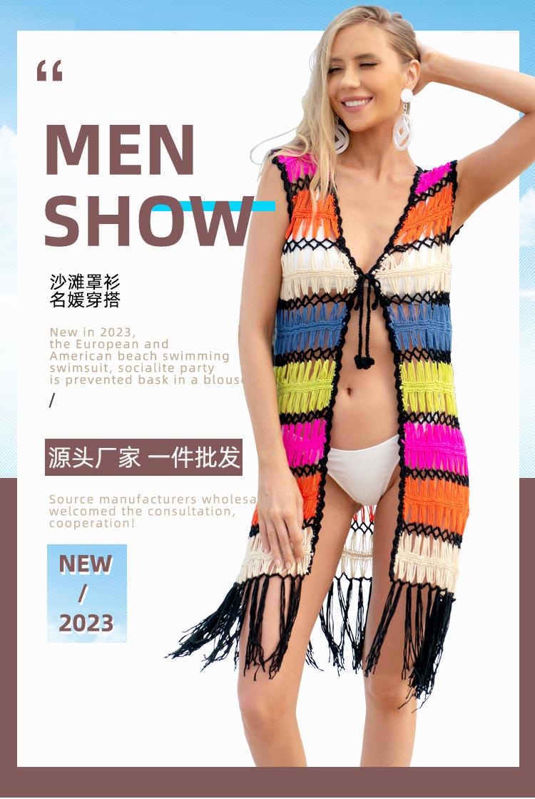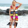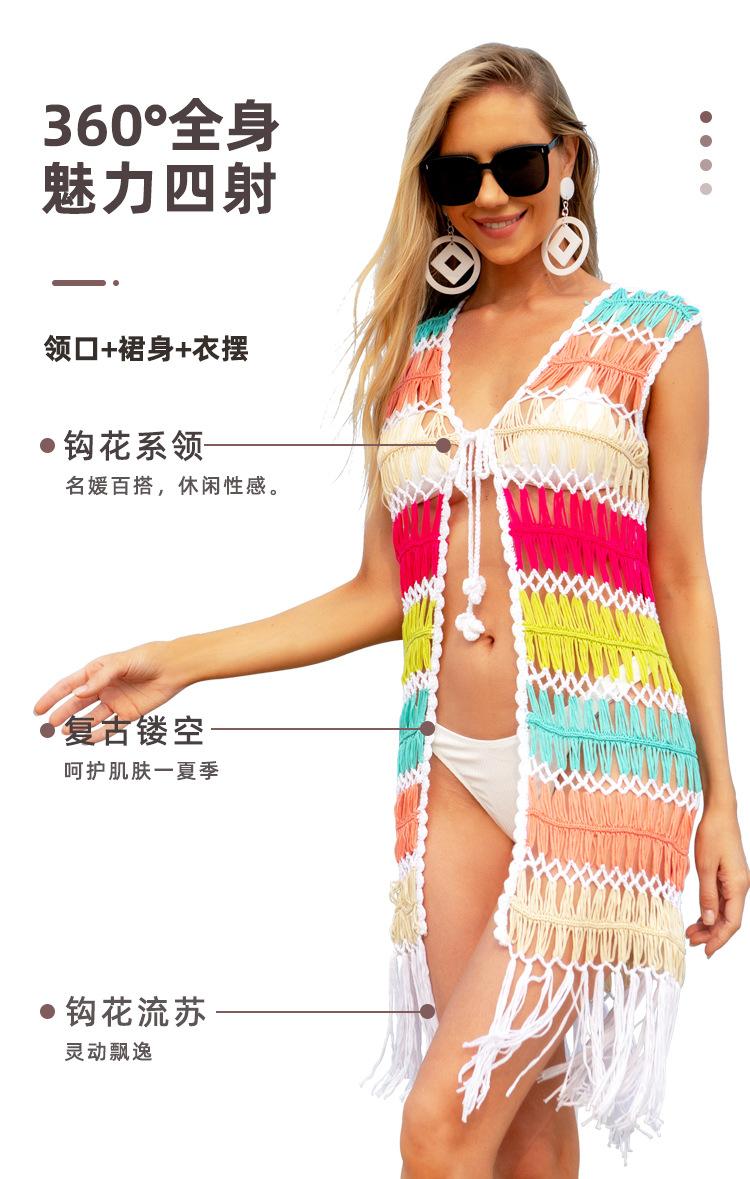 Europa y Estados Unidos transfronterizo tejido a mano sexy hueco borla playa blusa protector solar verano vacaciones junto al mar cárdigan al por mayor