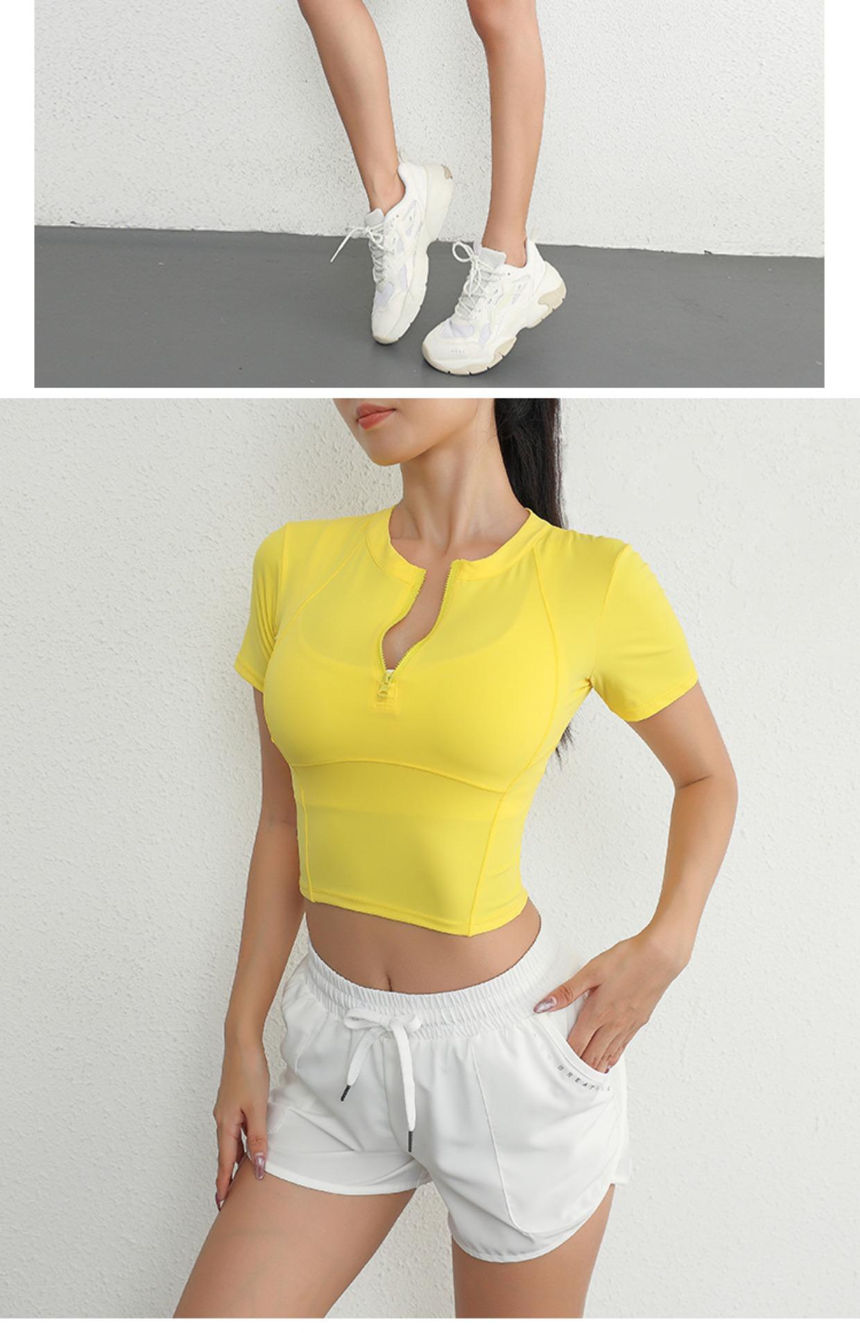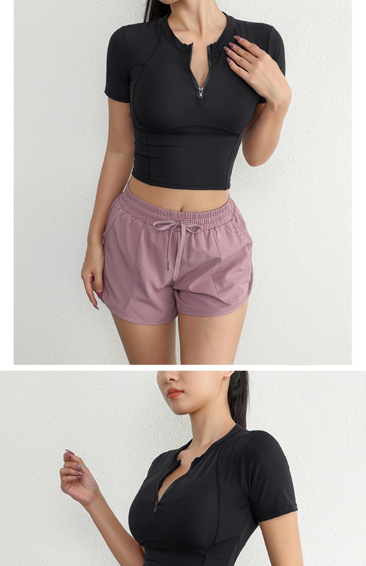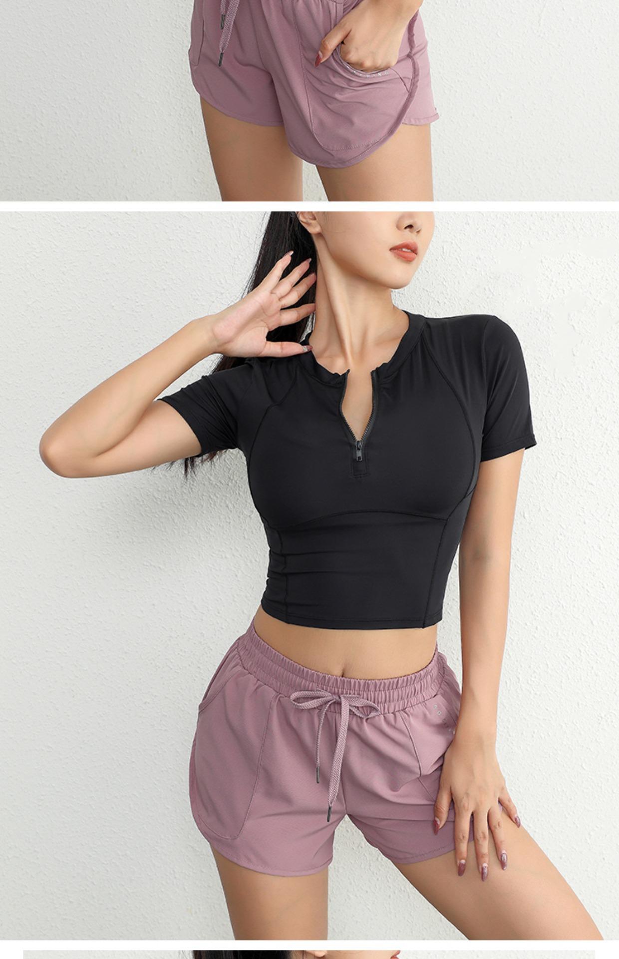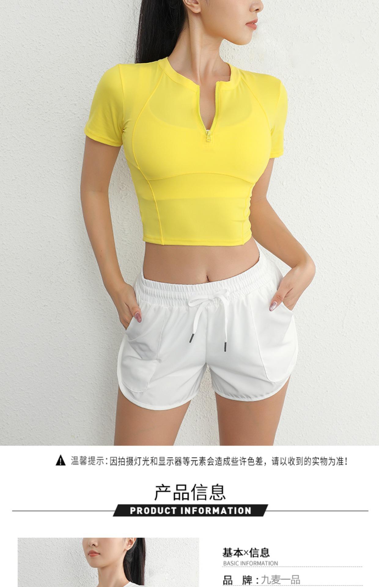 Ropa de yoga corta de verano con media cremallera, de secado rápido, para gimnasio, interior, internet, popular, de alta calidad, para entrenamiento de pilates.