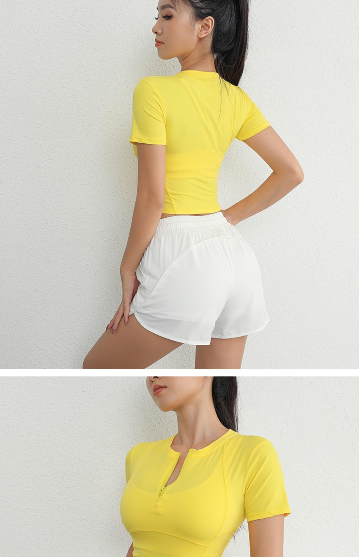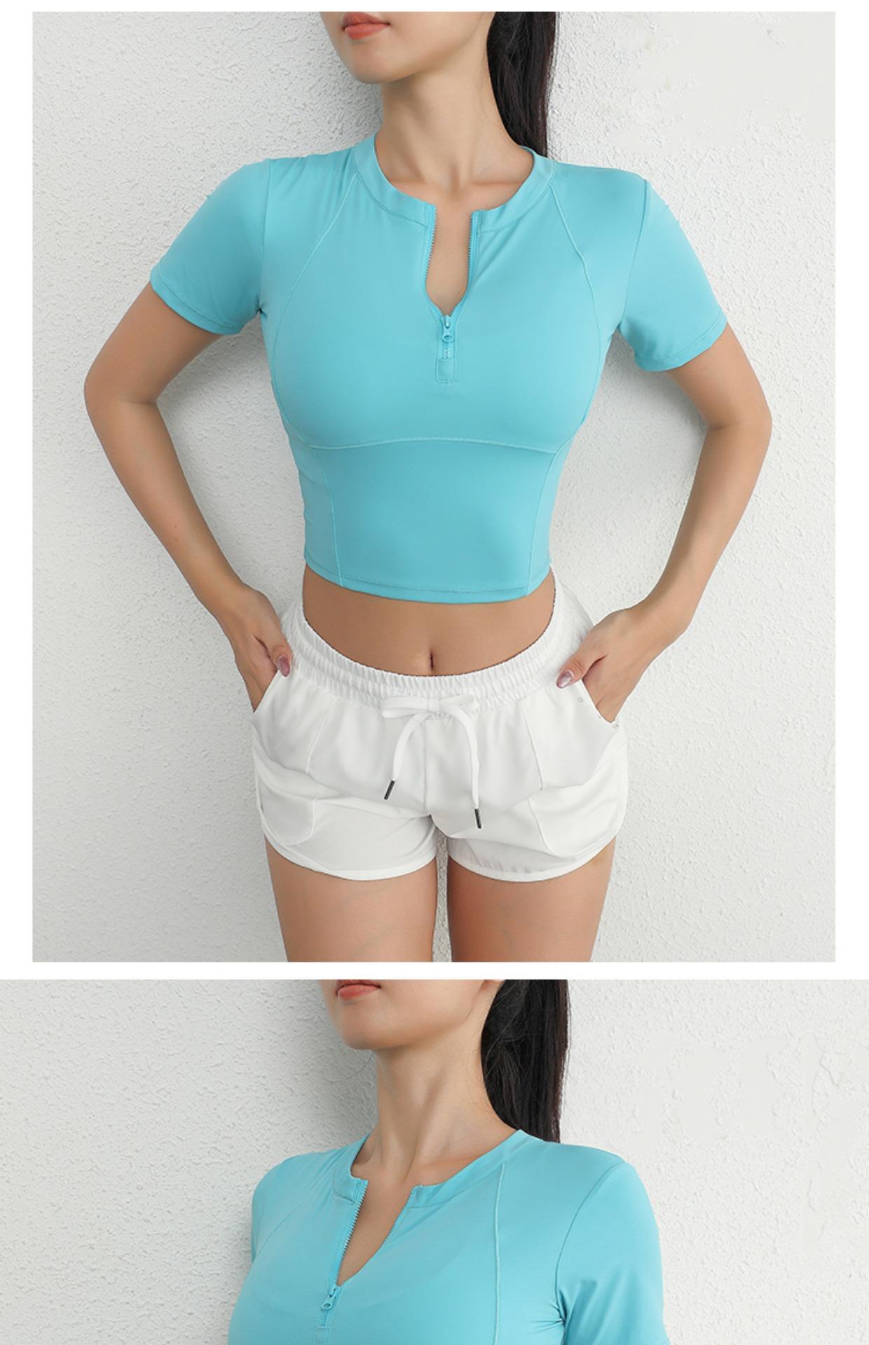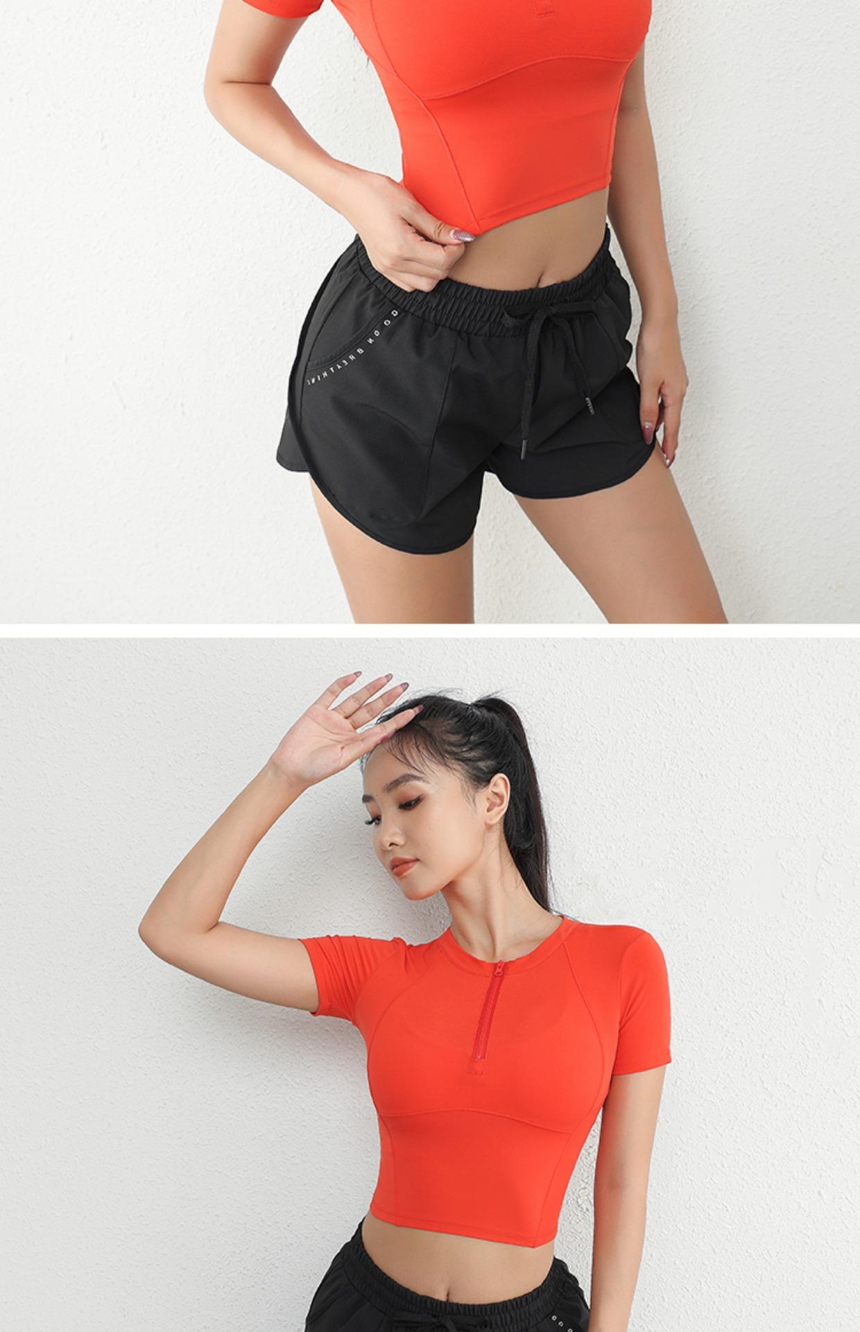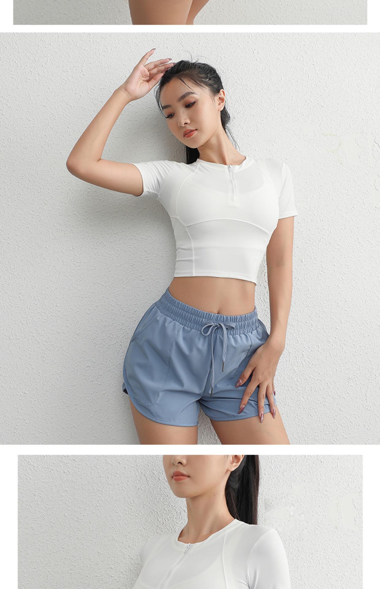 Ropa de yoga corta de verano con media cremallera, de secado rápido, para gimnasio, interior, internet, popular, de alta calidad, para entrenamiento de pilates.