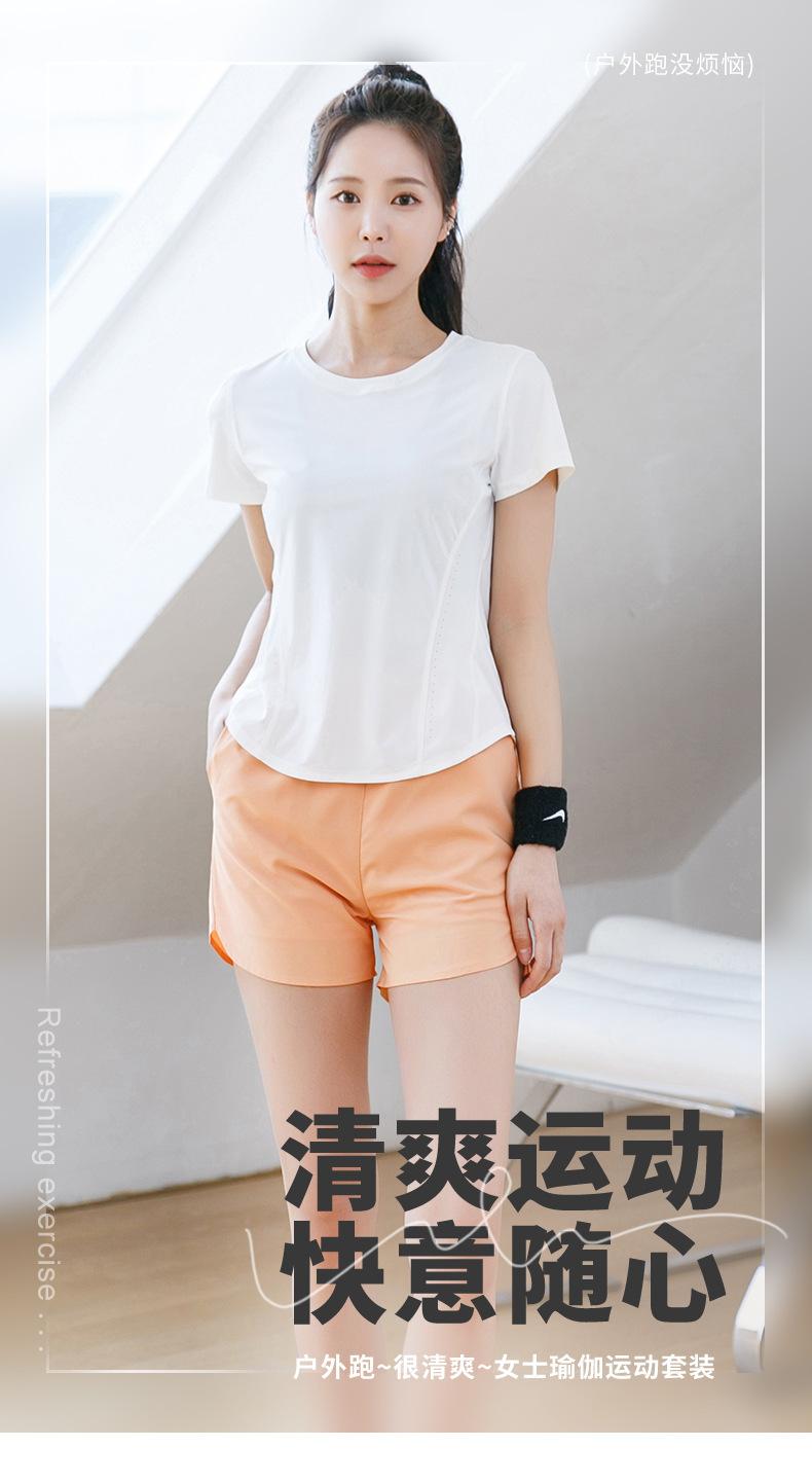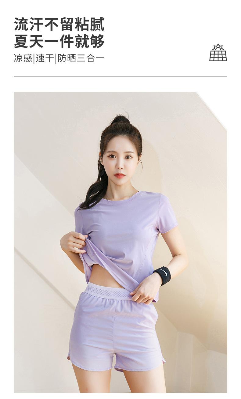 Traje deportivo delgado para mujer, verano, exterior, manga corta, secado rápido, ropa para gimnasio, correr, casual, para exteriores, ropa de yoga estilo coreano