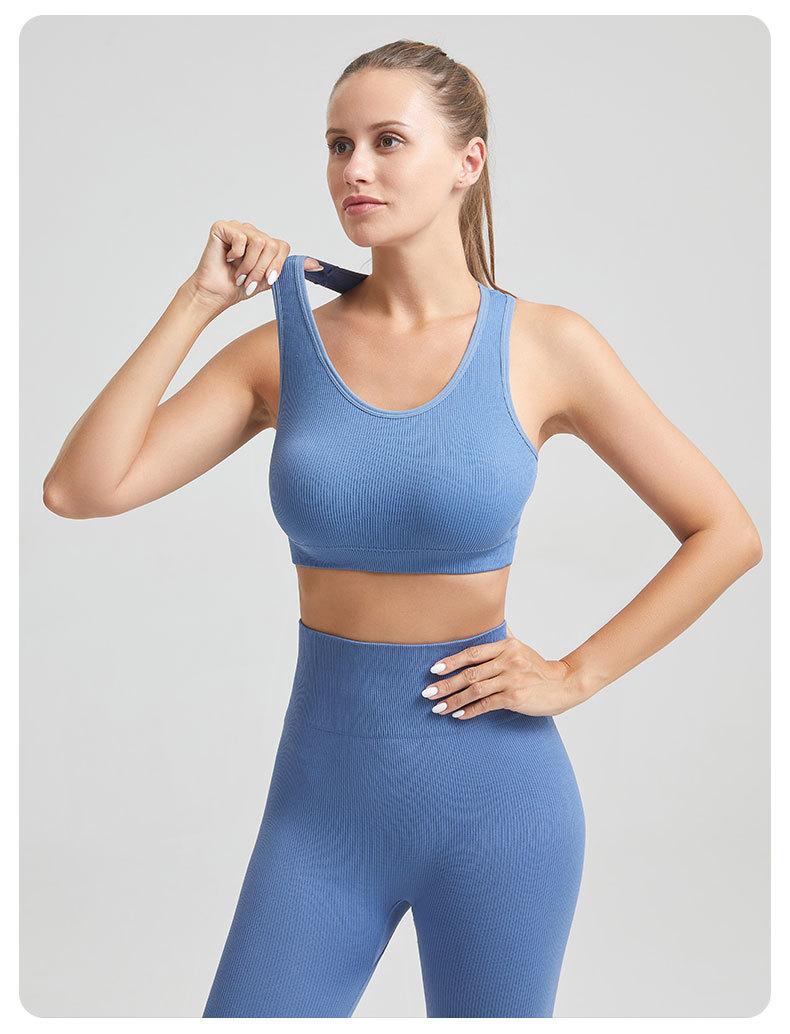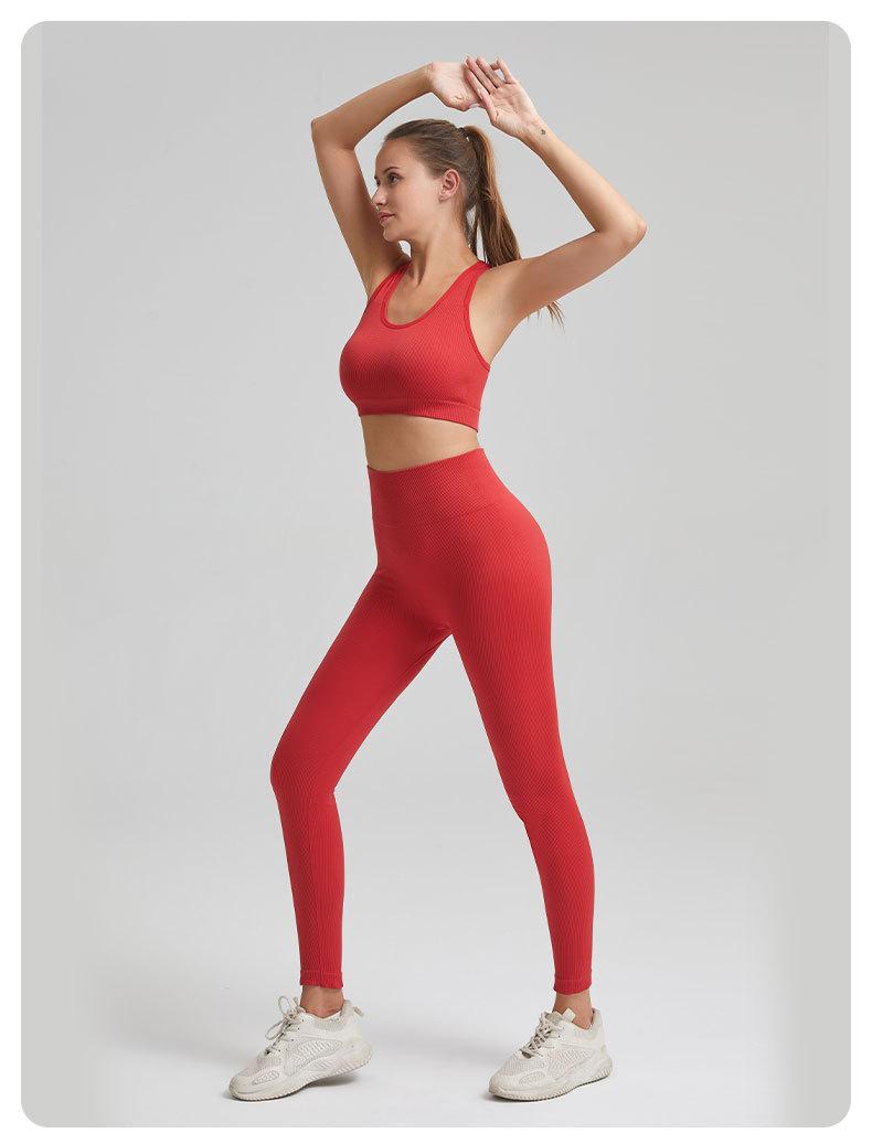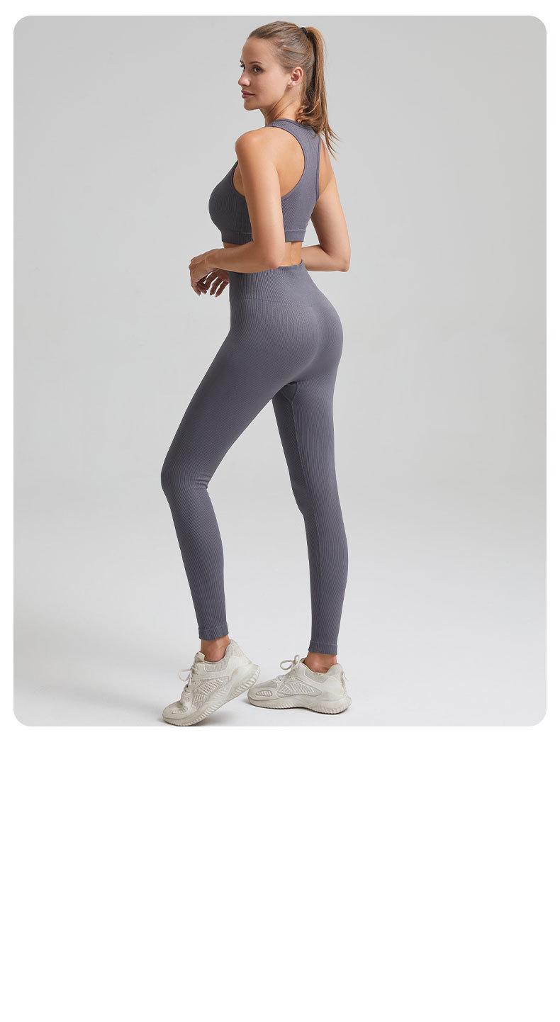 Traje de Yoga Seamless Transfronterizo Pantalones Chaleco Sin Aros Cintura Alta Ajustado Transpirable Fitness Running Traje Deportivo