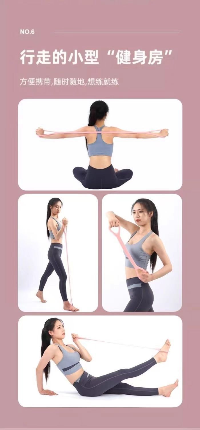 Tensor de 8 caracteres para espalda abierta para mujer, artefacto para espalda delgada, cinturón elástico de yoga para el hogar, cuerda elástica de silicona gruesa para la espalda.