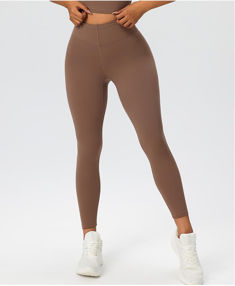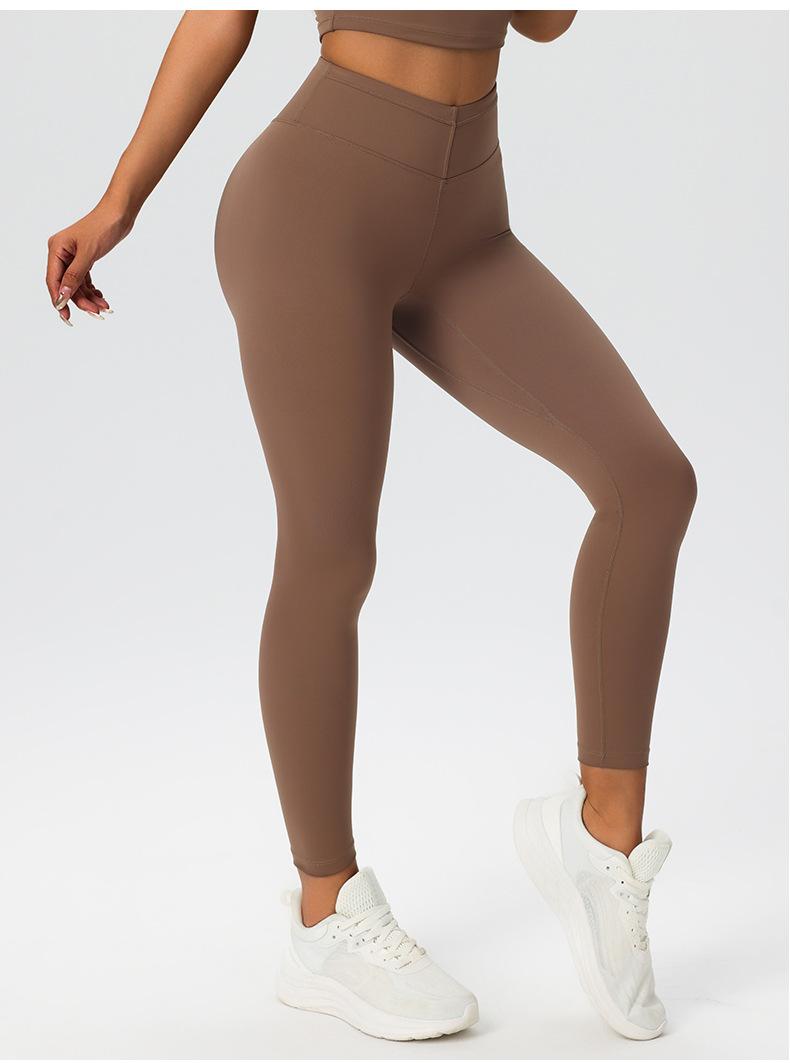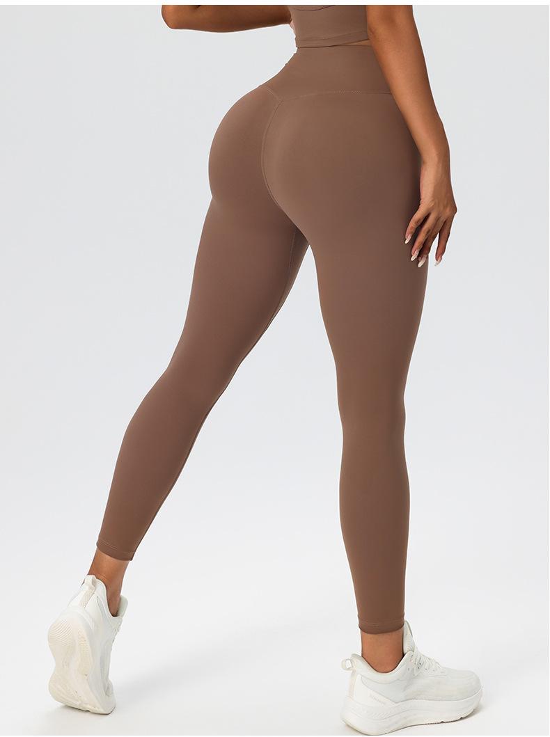 Pantalones de yoga de cintura alta para mujer, ajustados, de color melocotón, de estilo europeo y americano, de secado rápido, para correr y yoga.