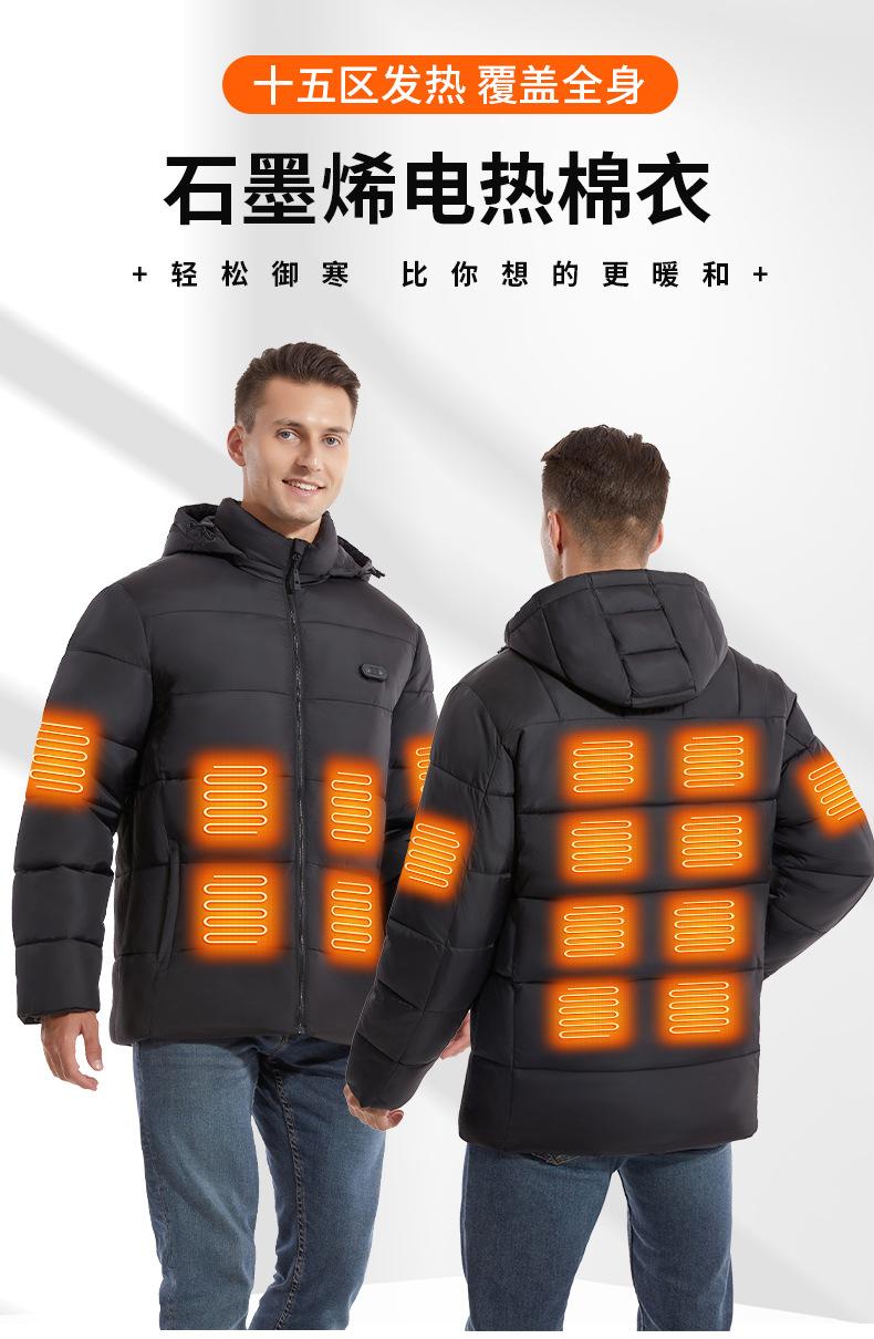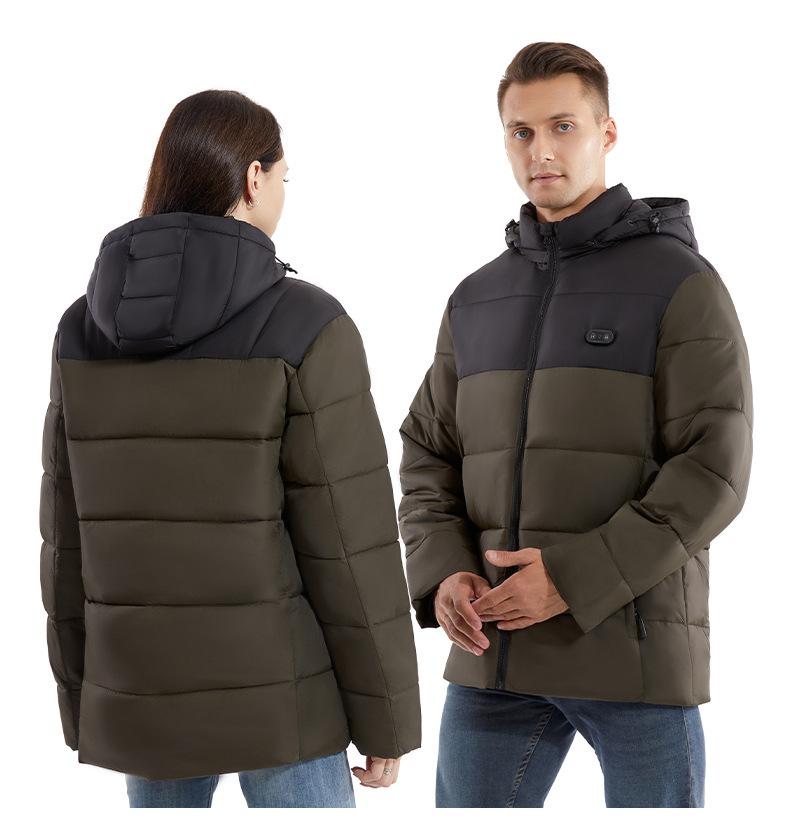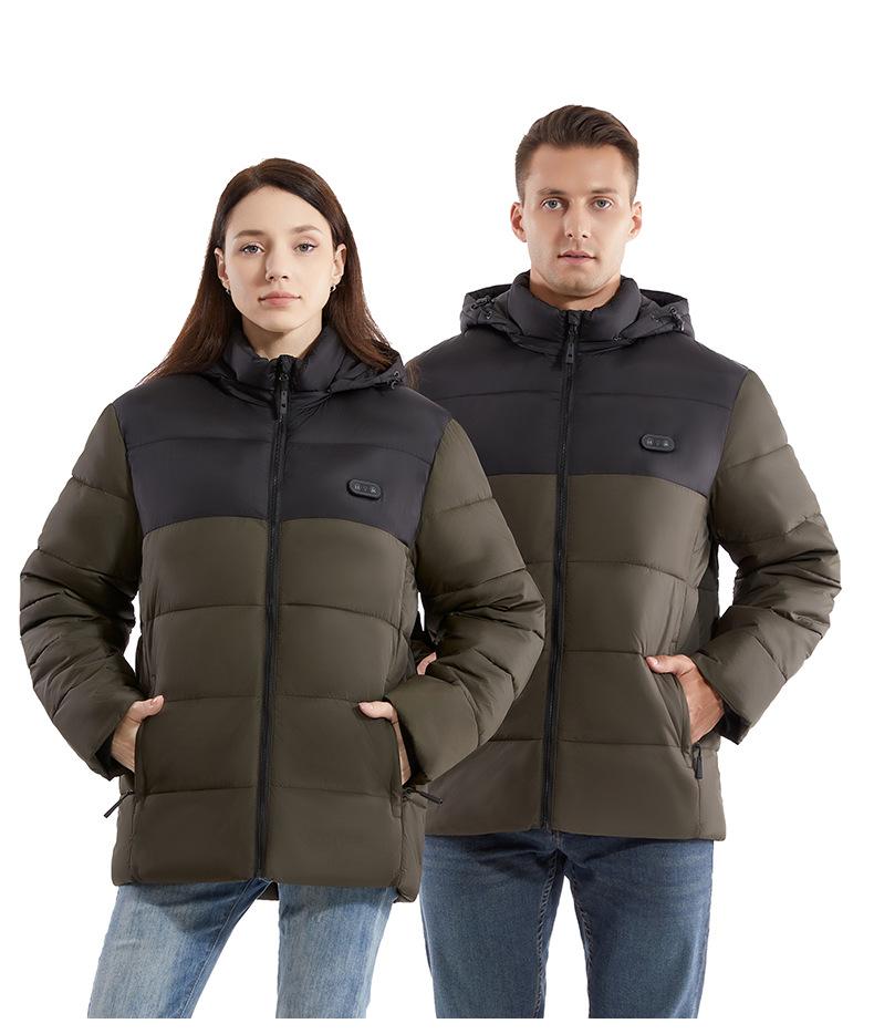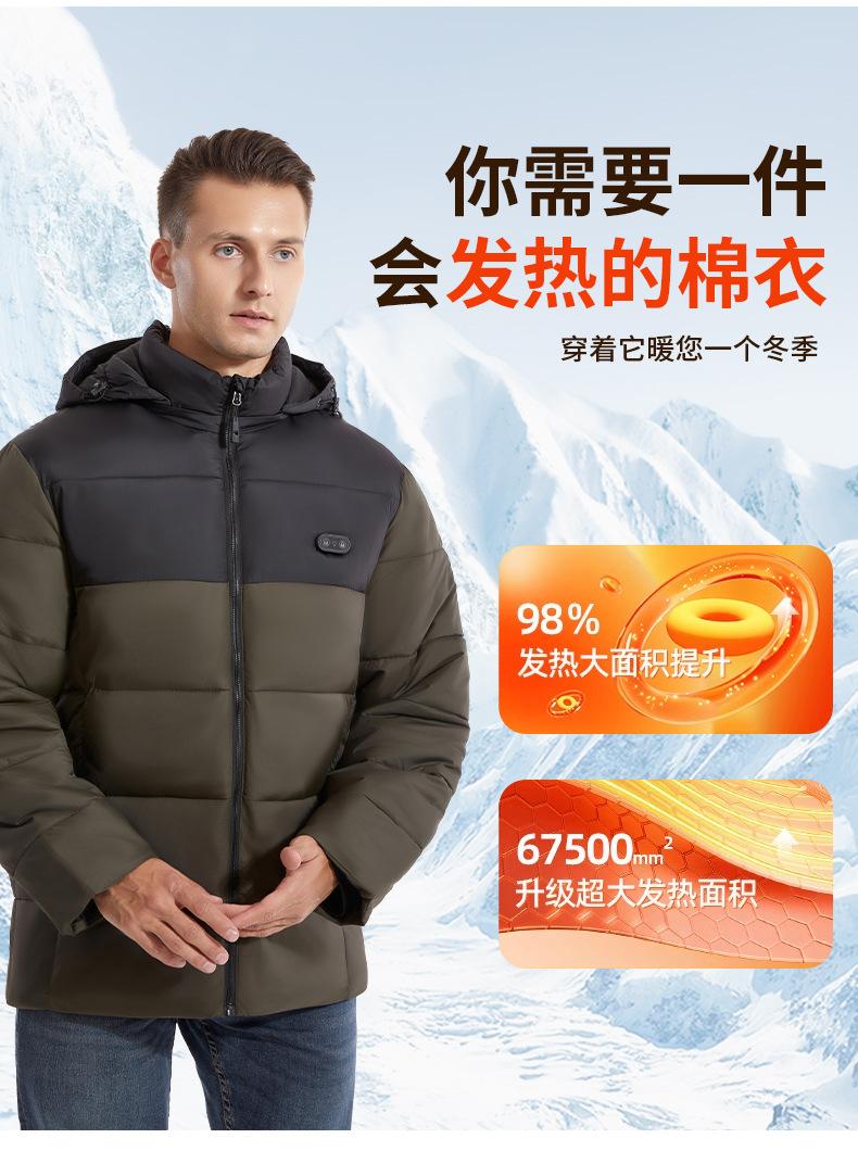 Ropa de calefacción inteligente transfronteriza, chaqueta acolchada de algodón con calefacción eléctrica de temperatura constante por USB, ropa acolchada de algodón, combinación de colores cálidos de CC, venta directa de fábrica