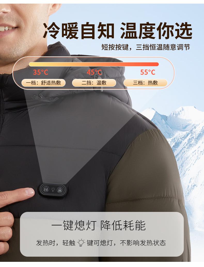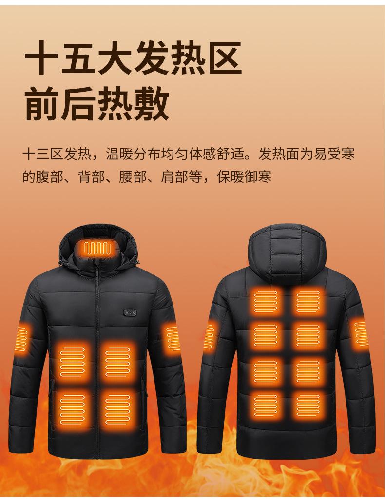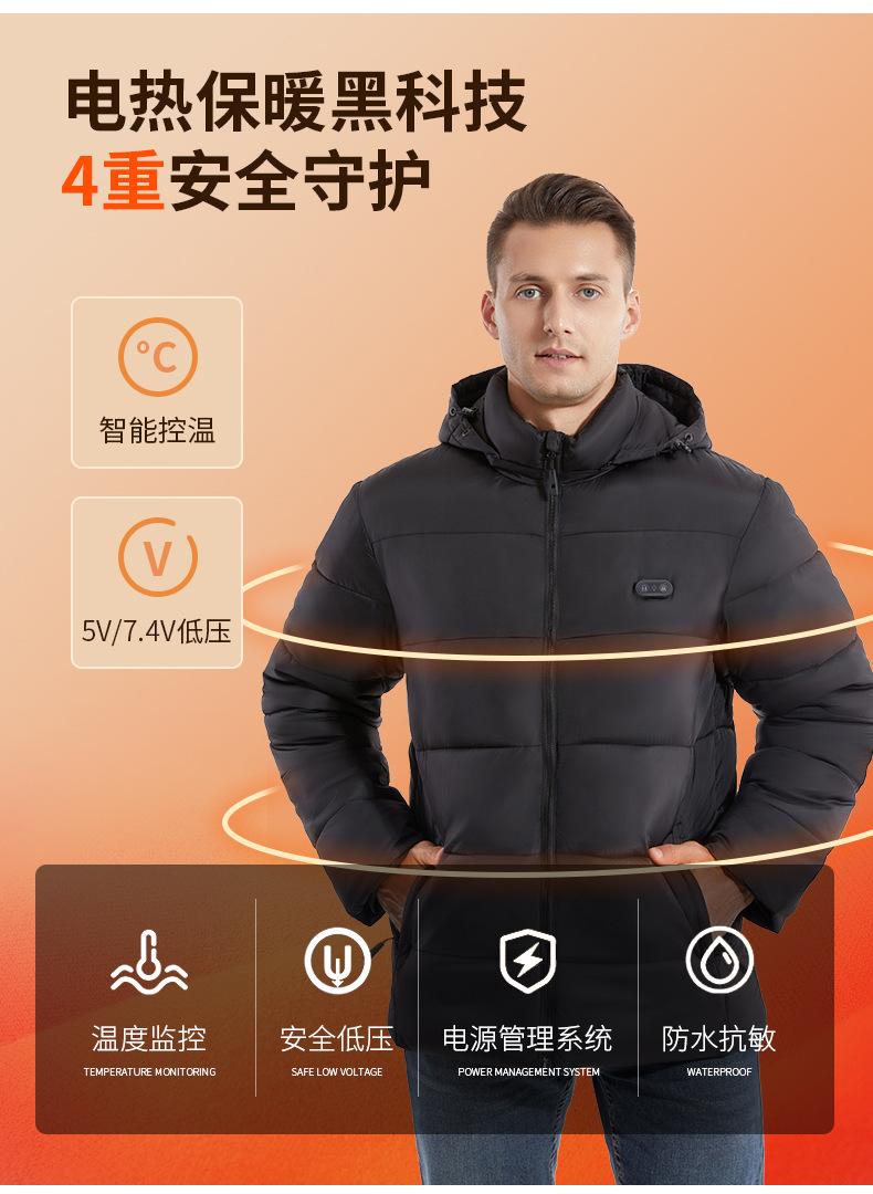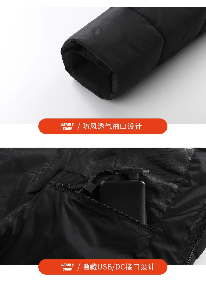 Ropa de calefacción inteligente transfronteriza, chaqueta acolchada de algodón con calefacción eléctrica de temperatura constante por USB, ropa acolchada de algodón, combinación de colores cálidos de CC, venta directa de fábrica